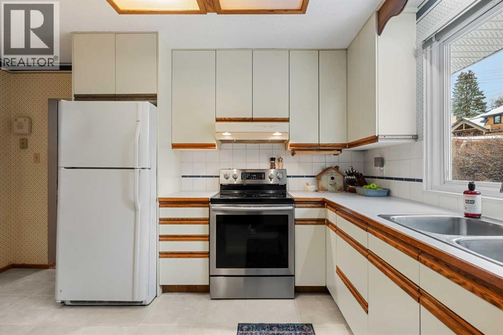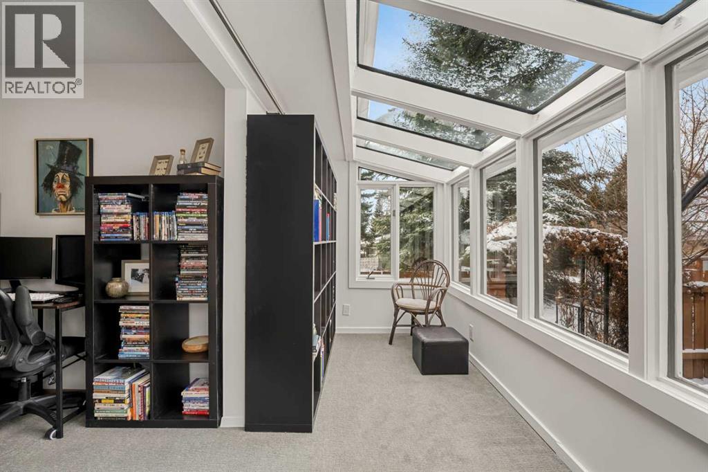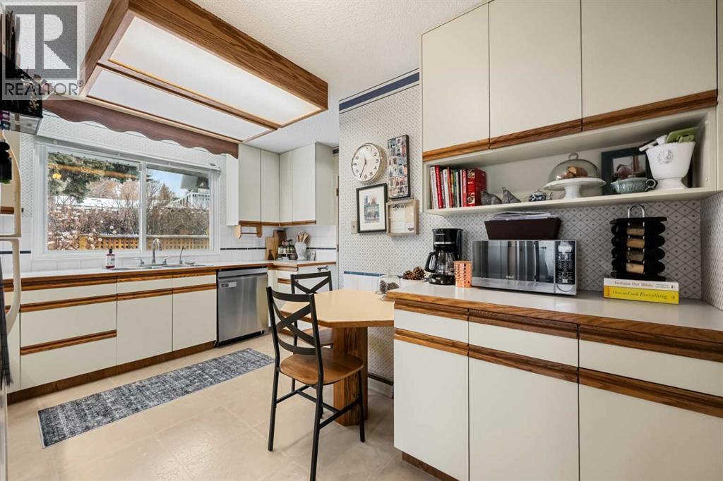 Surrounded by mature trees, lush perennial gardens, native plants, flowering shrubs, and thoughtfully curated landscaping, this property offers a true outdoor oasis that feels private, peaceful, and wonderfully established. Inside, the sunny south-facing living room is filled with natural light and centered around a cozy gas fireplace, creating a warm and inviting space to gather. The main level features three spacious bedrooms and a functional layout designed for everyday comfort. A rear mudroom provides convenient access to the garage, basement, and backyard, making busy days effortless and organized. The west-facing sunroom is a standout feature, offering the perfect place to unwind while overlooking your beautifully landscaped patio and gardens. Whether enjoying a quiet morning coffee or hosting summer evenings with friends, this space seamlessly connects indoor living with the serenity of the outdoors. The recently updated basement expands your living space with a large recreation room complete with built-ins, a second full bathroom, a fourth bedroom (window does not meet egress) and abundant storage. This level provides flexibility for guests, a home office, fitness space, or family movie nights. Meticulously maintained and lovingly cared for over the years, this home reflects true pride of ownership, with numerous thoughtful upgrades that enhance both comfort and longevity. New roof in 2017, 100 amp electrical panel in 2018, 40 amp sub panel added to garage and 12,000 BTU heater in 2021 (for welding or woodworking projects), water tank in 2025. Located less than two blocks from Nose Hill Park, you’ll enjoy immediate access to miles of walking and biking paths while still being minutes from transit, the University of Calgary, shopping, restaurants, schools, and playgrounds. This is a rare opportunity to own a timeless home in one of Calgary’s most established and sought-after communities. (id:6769)