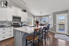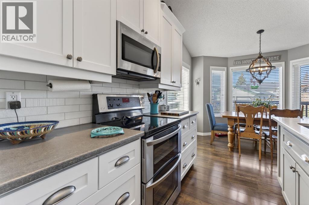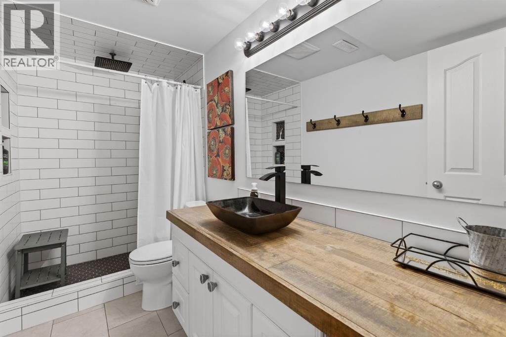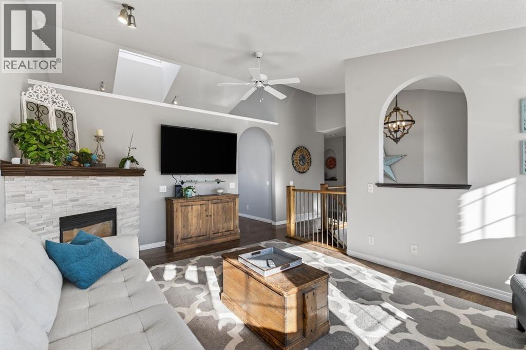 Welcome to this beautifully renovated bilevel perfectly situated in the highly sought after community of West Terrace. Tucked away on a quiet cul-de-sac just steps from the Bow River pathway system, this beautifully renovated and meticulously maintained 5-bedroom bi-level offers the perfect blend of family living, thoughtful updates, and an unbeatable location.The bright and welcoming main level features vaulted ceilings, skylights, and plenty windows that fill the home with natural light. The renovated kitchen is both stylish and functional with white cabinetry, quartz countertops, stainless steel appliances, a corner pantry, and a large island,—perfect for everyday living and entertaining. The adjoining dining area opens onto the back deck, complete with a gas line for your BBQ, making outdoor gatherings effortless.The spacious primary retreat includes a walk-in closet and private ensuite, while two additional great-sized bedrooms and a full bathroom complete the main floor. Contemporary lighting, updated flooring, and two cozy gas fireplaces add warmth and character throughout the home.Downstairs, the finished lower level offers incredible additional living space, highlighted by a stylish shiplap feature wall that carries down the staircase and adds warmth and character. You'll appreciate the two oversized bedrooms with built-in closer organizers sharing an updated full bathroom with rustic countertops and tiled walk-in shower. A large living room with cozy 2nd gas fireplace and recreation room with wet bar and refrigerator make this the perfect space for entertaining or watching the game. Your laundry room with sink is also found on the lower level. There is an abundant amount of storage space under the stairs and throughout the home. Outside, enjoy a large maturely landscaped yard, 2 sheds perfect for storage, gated dog run, and a heated double attached garage. With all the recent updates including a newer hot water tank (2024), this home offers peace of m ind along with exceptional value, a rare find in this very desirable neighbourhood. Located in one of Cochrane’s most sought-after neighbourhoods, this home is just moments from schools, parks, and scenic river pathways—an ideal setting for families looking for space, comfort, and community. (id:6769)