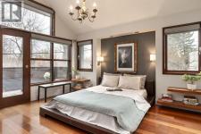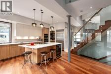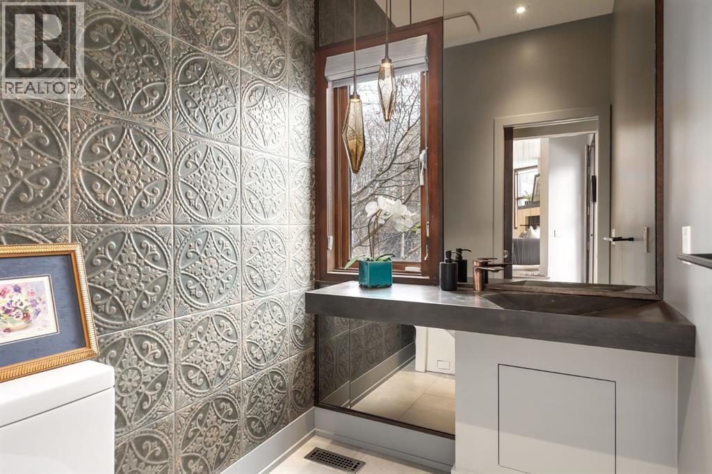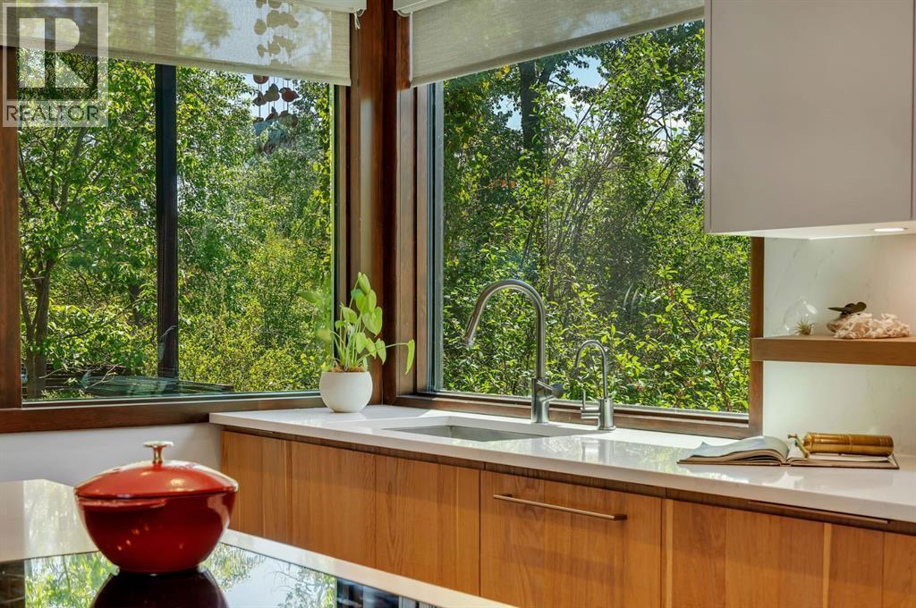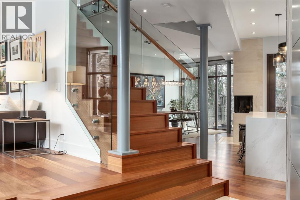 A rare offering nestled along Rideau Road - combining history, nature, and modern luxury— a prized river & park adjacent location. Opportunities like this in Rideau Park are few and far between, making this home a truly one-of-a-kind find.Inside, Brazilian cherry hardwood floors set the tone for timeless elegance. The main floor is designed for both connection and privacy, with a central glass staircase anchoring the layout. Enjoy the front library/den, an elegant living room, or dining with a view of the trees.The Porcelanosa kitchen is a showpiece—flooded with natural light and overlooking the park and river. Outfitted with a full Miele appliance package, induction cooktop with hidden hood, beverage center, walk-in pantry, and Porcelanosa finishes, it’s both functional and striking. A floor-to-ceiling window and wood-burning fireplace create a warm dining atmosphere.Upstairs, the southwest-facing primary retreat offers vaulted ceilings, a private balcony with river views, spa-like ensuite with natural stone, walnut cabinetry, heated floors, soaker tub, walk-in shower, and custom wardrobe system. Two additional bedrooms complete this level—one with cheater ensuite and steam shower, the other with rare river views.The finished basement includes a gym, rec room, 4th bedroom, full bath, laundry with sink, storage, and access to the front attached garage.The backyard flows seamlessly into one of Calgary’s most scenic parks, with the Elbow River Pathway just outside your door. Whether for morning jogs or evening strolls, this location is unmatched for lifestyle and connection to nature.Rooted in legacy, Rideau Park is one of Calgary’s most prestigious communities, once home to CHCT-TV’s first studios. Rarely do homes of this caliber on Rideau Road come to market—this is more than a home, it’s a once-in-a-generation opportunity to own a piece of Calgary’s history in an irreplaceable location. (id:6769)