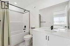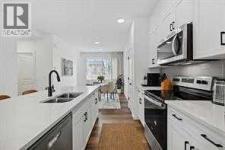 END UNIT - NO CONDO FEE! Welcome home to this beautifully maintained 2-storey townhome, built in 2024, has New Home Warranty. Step inside to discover a modern open-concept main floor, where the living, kitchen, and dining areas flow seamlessly over beautiful laminate flooring. The stylish kitchen is a chef’s dream, featuring quartz countertops, a large island, and stainless steel appliances. A convenient half-bath completes this level Upstairs you'll find a generously sized primary bedroom comes complete with a walk in closet and 4-pc ensuite bathroom. Two additional good sized bedrooms, 4 pc bath and laundry complete the upper floor. The backyard, with alley access, provides ample space and potential for a future double garage, workshop, or man cave. The Basement is fully framed, also electrical work is completed , featuring a large window and rough-in for a bathroom, giving you the opportunity to design a space that fits your needs. An easy walk to the shops, restaurants & services of Legacy Common and All Saints High School. The community features 15km of scenic pathways into the 300 acre Pine Creek Valley environmental reserve, numerous playgrounds, a community garden & public art. Easy access to MacLeod Trail & Stoney Trail allow you to get anywhere in the city easily (id:6769)