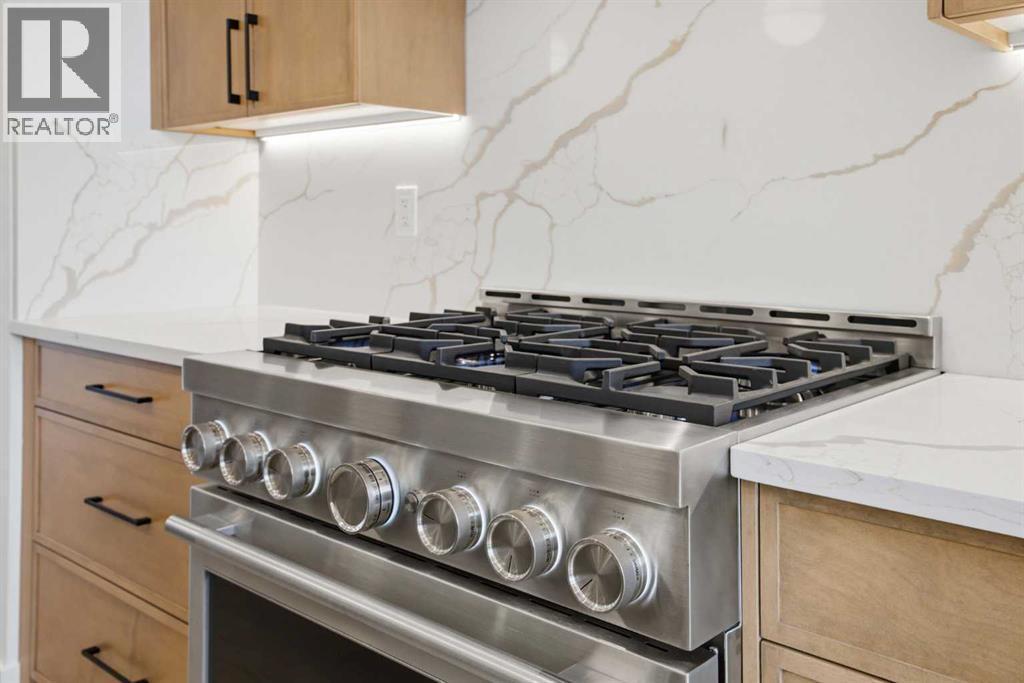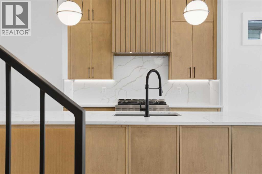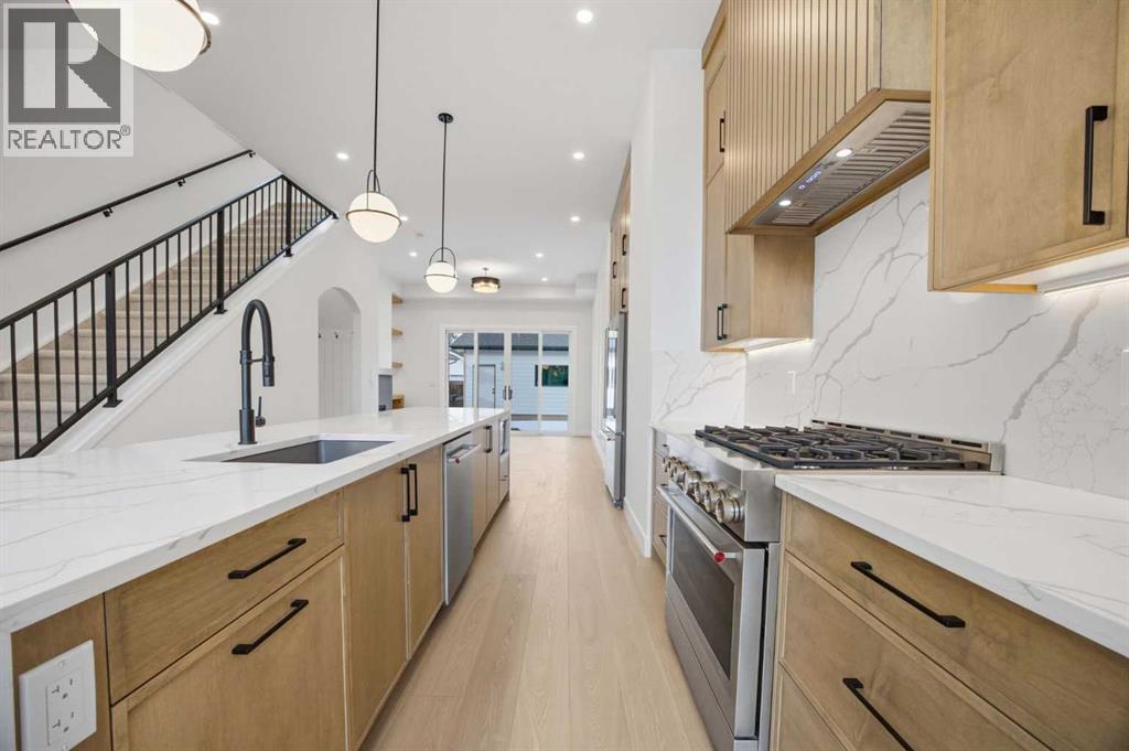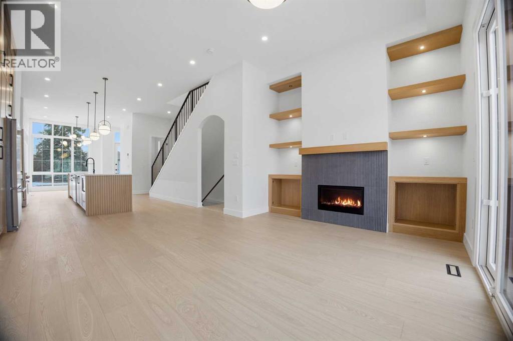 ****OPEN HOUSE SATURDAY MARCH 14 | 10:00 AM – 4:00 PM**** Welcome to Ramsay and its newest luxury infill on the picturesque 23 Ave SE. This exceptional home blends architectural character with modern design, creating timeless curb appeal with its triple-arch front elevation, detailed masonry, and durable Hardie Board siding, all complemented by clean, low-maintenance landscaping.Step inside and you will immediately notice the scale and craftsmanship that make this home stand out. The main floor features impressive 11-foot ceilings, a striking 10-foot custom entry door, and 10-foot Lux windows that fill the space with natural light. The open-concept layout is centred around a stunning 14-foot quartz waterfall island and micro-shaker cabinetry, creating the perfect space for both everyday living and entertaining. A cozy gas fireplace and a beautifully designed powder room add character, while continuous site-finished engineered hardwood flooring ties the entire level together.Upstairs you will find three bright and spacious bedrooms, thoughtfully designed for comfort and functionality. The primary suite feels like a private retreat, highlighted by a soaring 13-foot vaulted ceiling. The spa-inspired ensuite features heated tile floors, and the custom walk-in closet is finished with a dramatic barrel ceiling and continued hardwood flooring.The fully developed basement offers even more space to relax and entertain. It includes a fourth bedroom, a large recreation room, and a stylish cocktail bar that is perfect for hosting guests.Located just steps from downtown, breweries, coffee shops, restaurants, parks, and a K–6 school, this home offers an ideal blend of lifestyle and convenience. (id:6769)