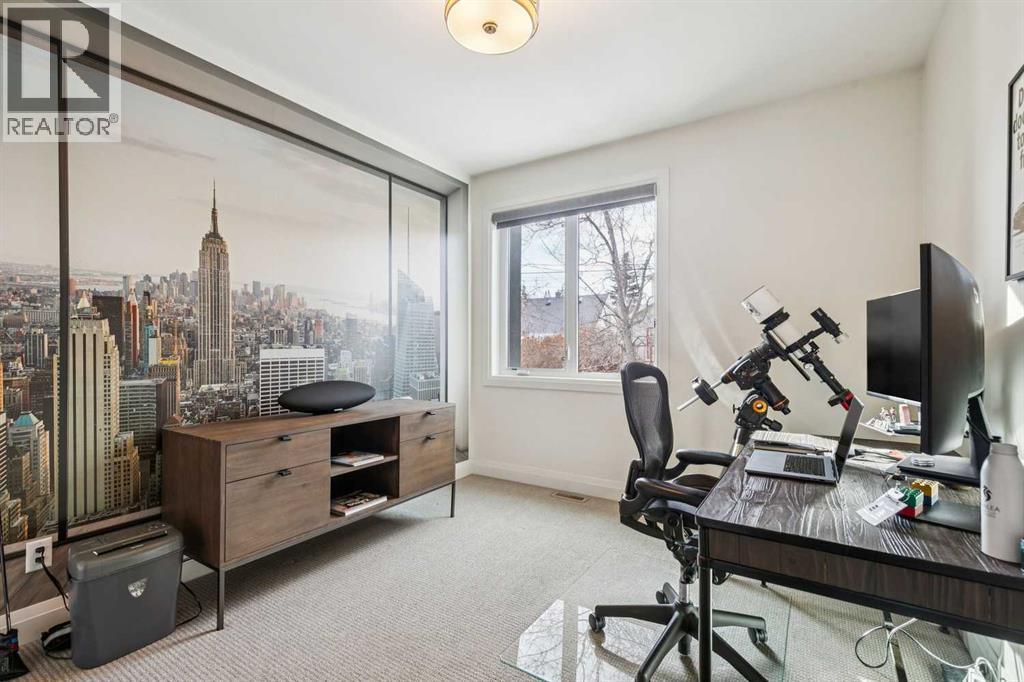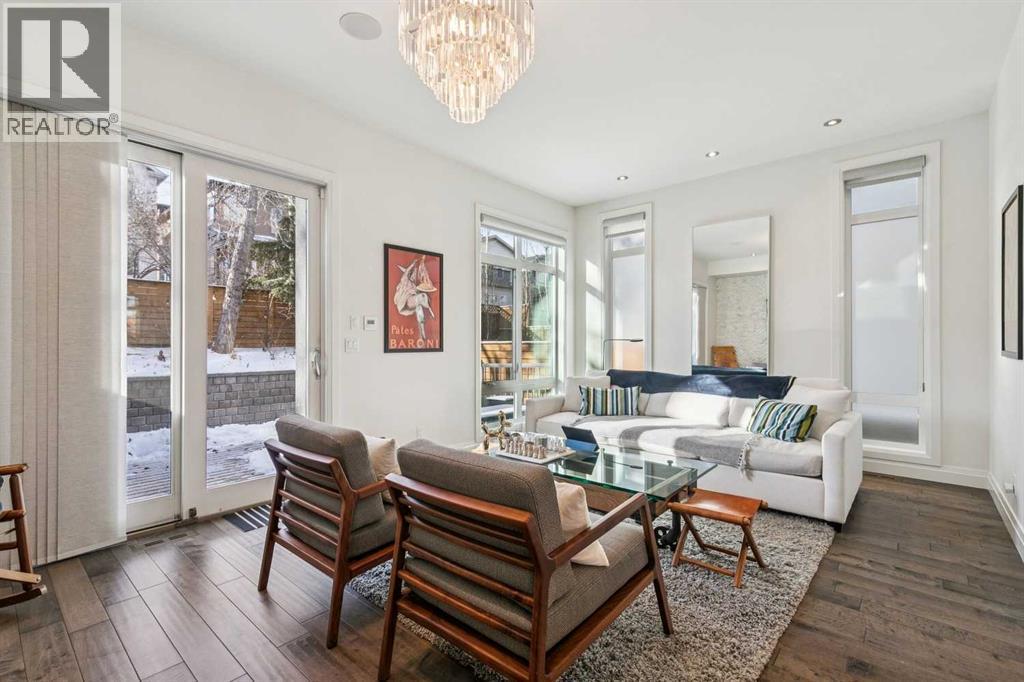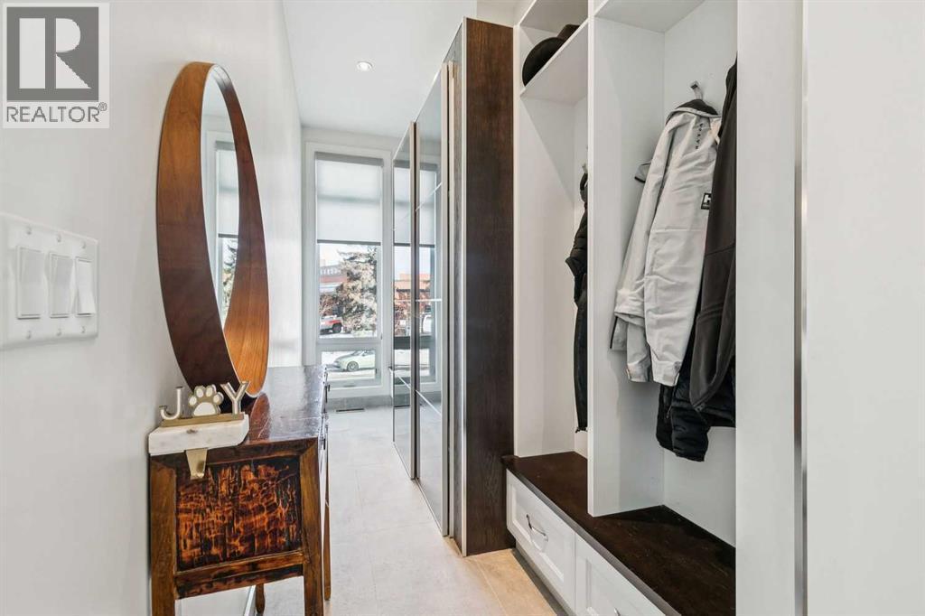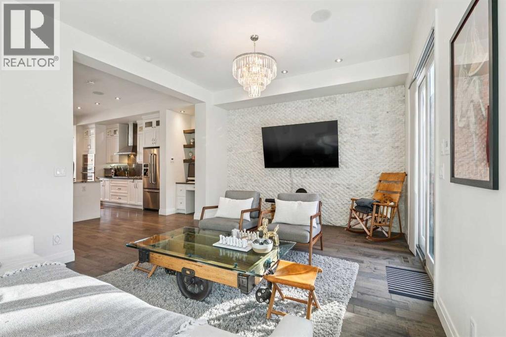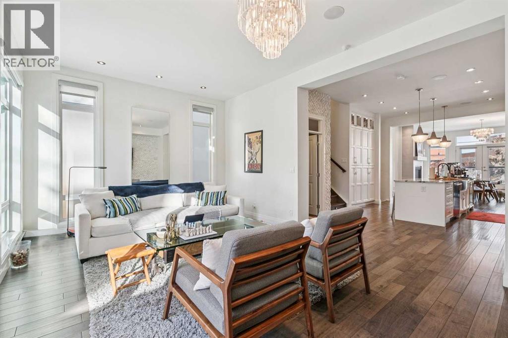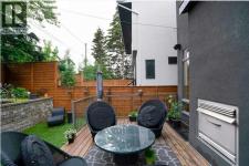 Front attached garage in the inner City!! Rare find. This high end custom executive home features; Kohler sinks and toilets throughout, Riobel faucets throughout, granite in all bathrooms and laundry room, flat ceiling throughout, locker system in the front hall, feature stone wall in the living room and stairwell, built in sound system, frosted privacy windows in the living room, 6 burner gas stove, wine fridge, shadow boxes in the kitchen, walk in closets with wood builtins in all bedrooms, central air conditioning, epoxy flooring in the garage, exposed aggregate driveway and walkways, gas fireplace on the rear deck, rooftop deck with all day sun and views of downtown.........Wow. The floorplan is open and bright with floor to ceiling windows. The dining room and living room areas could be reversed depending on the buyers preference. Large gourmet kitchen with a huge island and feature backsplash and hoodfan. Three large bedrooms upstairs all with walkin closets with wood built in organizers. The basement offers a 13x18 flex room with a 3pc bath and walkin closet. Ideal for a home gym, gear room or dream teenager bedroom. Two outdoor living spaces, one in the rear yard and the other is a rooftop deck. Great access to downtown, river pathway system and the mountains. (id:6769)