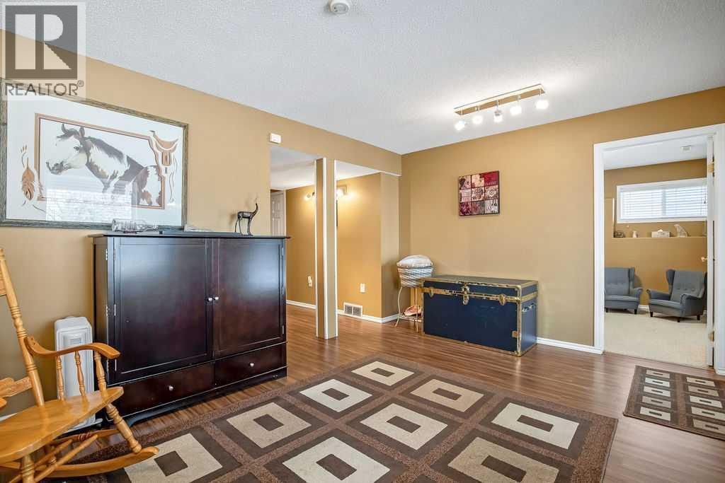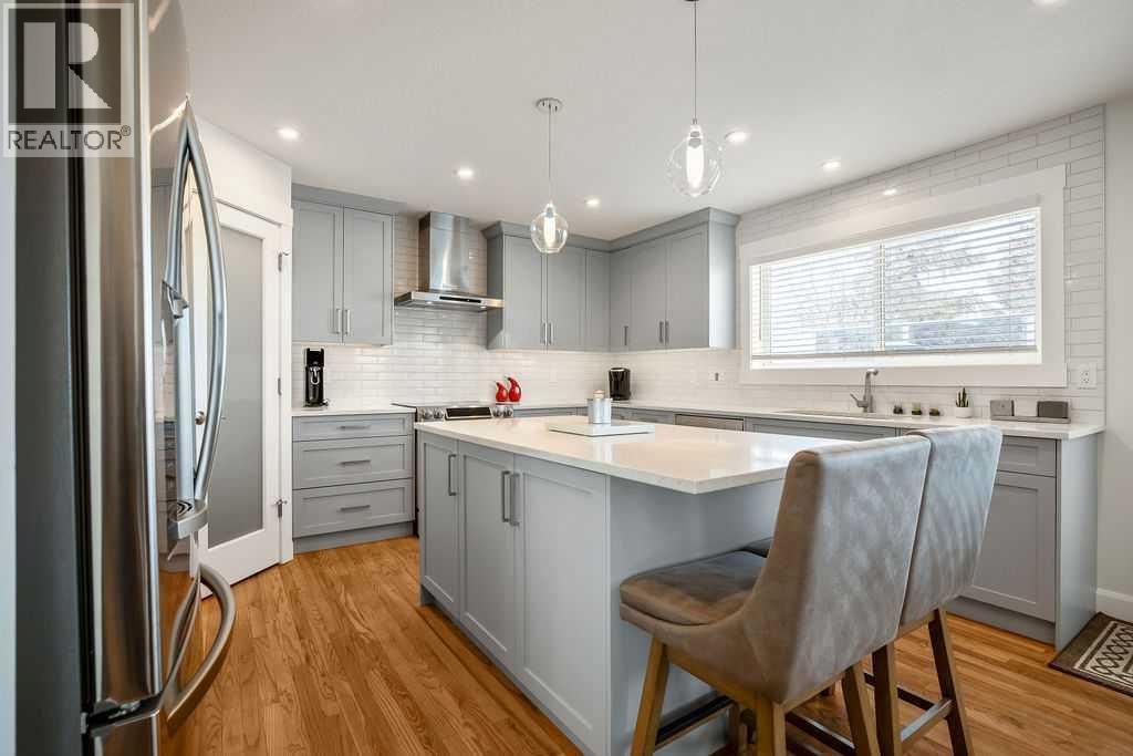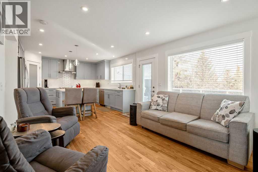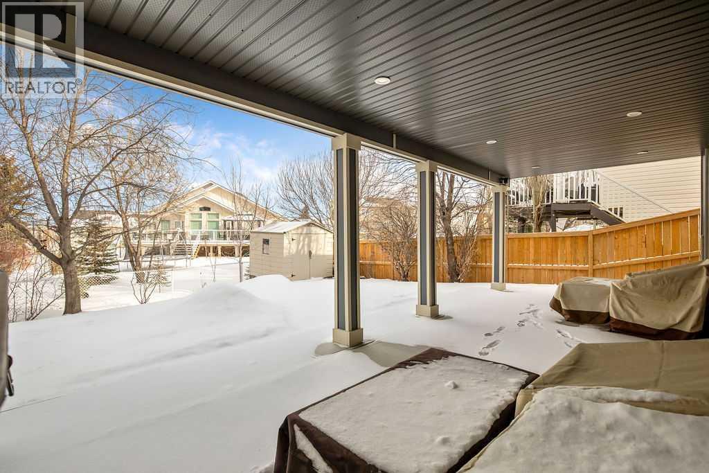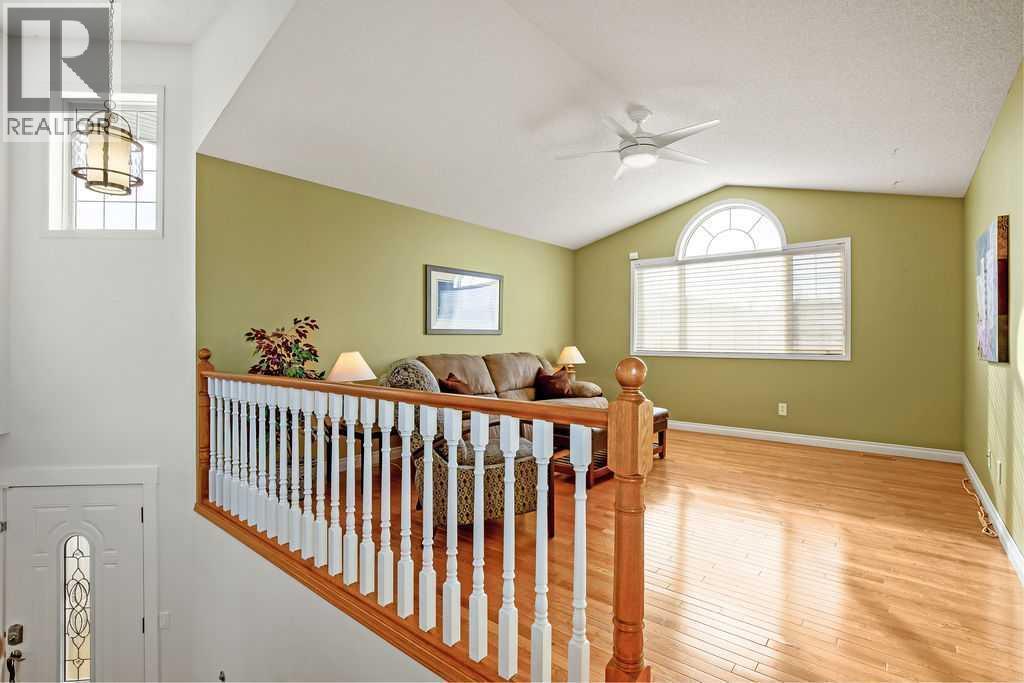 Lake living at its finest! You and your family will enjoy swimming, boating, fishing, and skating in the community with the Rocky mountains as your backdrop. Schools and shopping are also right there. This spacious two storey home shows pride of ownership the moment you see it. You enter the home to an open plan with a large dining room and built in cabinet. The real treat is the newly renovated island kitchen. Boasting tonnes of cabinetry, a corner pantry, quartz counters and stainless steel appliances including an induction stove! Relax in the living room and enjoy the gas fireplace. Real hardwood flooring looks great and is located on both the main and upper floor. Kids will hang out in the large bonus room featuring vaulted ceilings and lots of light. All bedrooms are well sized and the master bedroom has a walk in closet and four piece en suite. Need more space. Well, get ready for the fully finished walk out level. It has a rec room, fourth bedroom, three piece bath, and ample storage. Enjoy outdoor living on either the low maintenance deck or on the fully lit walkout level patio. Escape the heat with the central air conditioning. The home also has built in soffit lights to provide better visibility and style. This just might be the ideal family home! (id:6769)