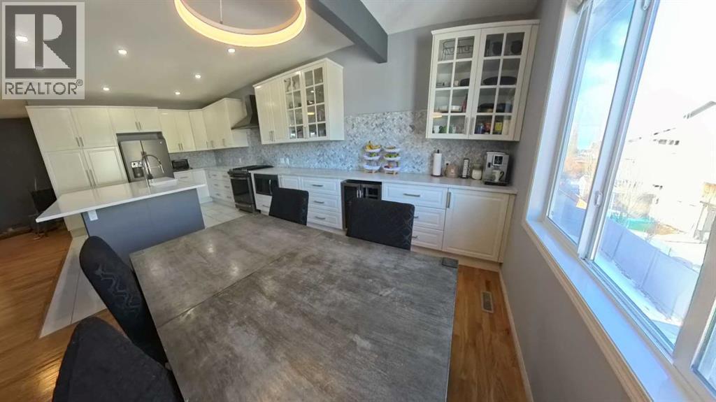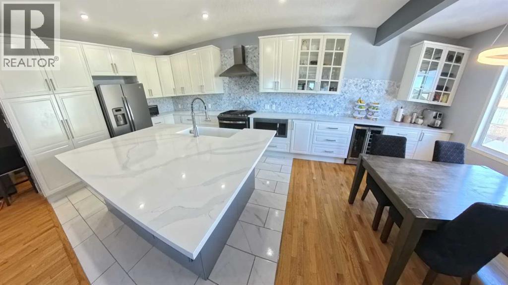 Spacious, move-in-ready family home offering 3,300+ sq ft of fully developed living space, perfectly positioned next to a green strip with only one neighbour, a rare combination of privacy, light, and open space. With 5 bedrooms plus a den, this home is built for family living, giving everyone room to spread out while keeping the layout practical and connected. At the center of it all is a true family-sized kitchen for people who love to cook and gather. Thoughtfully modernized and designed for high-traffic days, it features a huge breakfast bar and an extended countertop that easily handles big meals, baking projects, and hosting. Enjoy the convenience of a built-in wine fridge, plus a dedicated morning coffee area that keeps the daily routine organized and effortless. With generous prep space and an open, welcoming feel, this kitchen is made for everything from weeknight dinners to holiday entertaining. Comfort is covered year-round with air conditioning, and day-to-day convenience shines with hot water on demand. Storage is also a standout: the 2-car garage includes plenty of customized storage, and the utility room offers additional built-in organization—perfect for keeping seasonal items, tools, sports gear, and household supplies neatly out of sight. Downstairs, the fully developed walkout basement adds bright, flexible living space with direct backyard access—ideal for a media room, play zone, teen hangout, guest area, or home gym. Step outside to enjoy your private outdoor setup, featuring a covered deck that extends your living and or storage space. Unwind year-round in the hot tub, and for pet owners, appreciate the practicality of a dedicated dog run. The zero-scaped yard keeps maintenance low, so you spend more time enjoying the home and less time on yard work. Location adds even more value: school buses for all grades stop just steps from the house, making mornings and after-school routines simple. With exceptional square footage, smart upgrades, priv acy beside the green strip, and family-first features throughout, this home delivers the space, comfort, and lifestyle you’ve been looking for. (id:6769)
