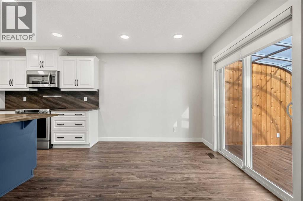 Welcome to this beautifully updated & move-in ready 3-bedroom, 3.5-bath two-storey home, ideally situated on a quiet street in the sought-after community of Kincora. Just minutes from Creekside, Sage Hill, & Beacon Hill Shopping Centres—with everything from Walmart to Costco, dining, & everyday amenities close at hand—plus easy access to transit, parks, & major roadways, this home offers the perfect balance of convenience, comfort, & lifestyle. Step inside to discover a bright, open-concept layout designed for both everyday living & entertaining. Freshly painted with new carpet throughout (completed March 2024), this home feels clean, modern, & turnkey from the moment you walk in. The spacious front entry leads into a stunning kitchen featuring custom cabinetry with convenient roll-outs, stainless steel appliances, leather-finished granite countertops, a full-height granite backsplash, & a large centre island with undermount double sink. A standout feature of this home is the fabulous walk-through pantry, offering a functional blank canvas for exceptional storage & organization. Thoughtfully designed to connect the kitchen & mudroom, this space is ideal for busy households, grocery drop-offs, & keeping everyday essentials neatly tucked away. Customize the perfect pantry to suit your individual needs. The inviting living room is anchored by a custom-built fireplace surround featuring an electric fireplace, creating a warm & stylish focal point. The adjoining dining area flows seamlessly into phenomenal outdoor living spaces. Enjoy a large covered sun porch with beautiful cedar decking, a bright three-season sunroom (approx 100 sq ft), & a private two-tiered deck complete with gas BBQ hookup & wiring ready for a future hot tub. The beautifully landscaped pie-shaped lot is fully fenced & professionally designed, creating the perfect setting for summer evenings, family gatherings, or quiet mornings with coffee. The rear yard also features an oversized storage shed for s easonal & outdoor items. Upstairs, you’ll find 3 spacious bedrooms including a serene primary retreat with a fully completed walk-in closet with custom built-ins & a luxurious 5-piece ensuite with corner soaker tub, walk-in shower, granite countertops, & Kohler fixtures. A well-appointed 4-piece bathroom with tile flooring & granite counters completes the upper level. The fully finished basement offers additional living space with a large rec room, oversized windows, a full 4-piece bathroom, linen storage, & a dedicated utility & storage area. Major mechanical updates provide peace of mind, including a new furnace & central air conditioning installed in July 2025, along with a new roof & garage door. Additional features include LVP flooring, tile bathroom floors, custom window shutters, built-in speaker wiring, & a finished heated double attached garage with extended driveway. This thoughtfully maintained & beautifully upgraded home is truly one of a kind & ready for its next owners. (id:6769)