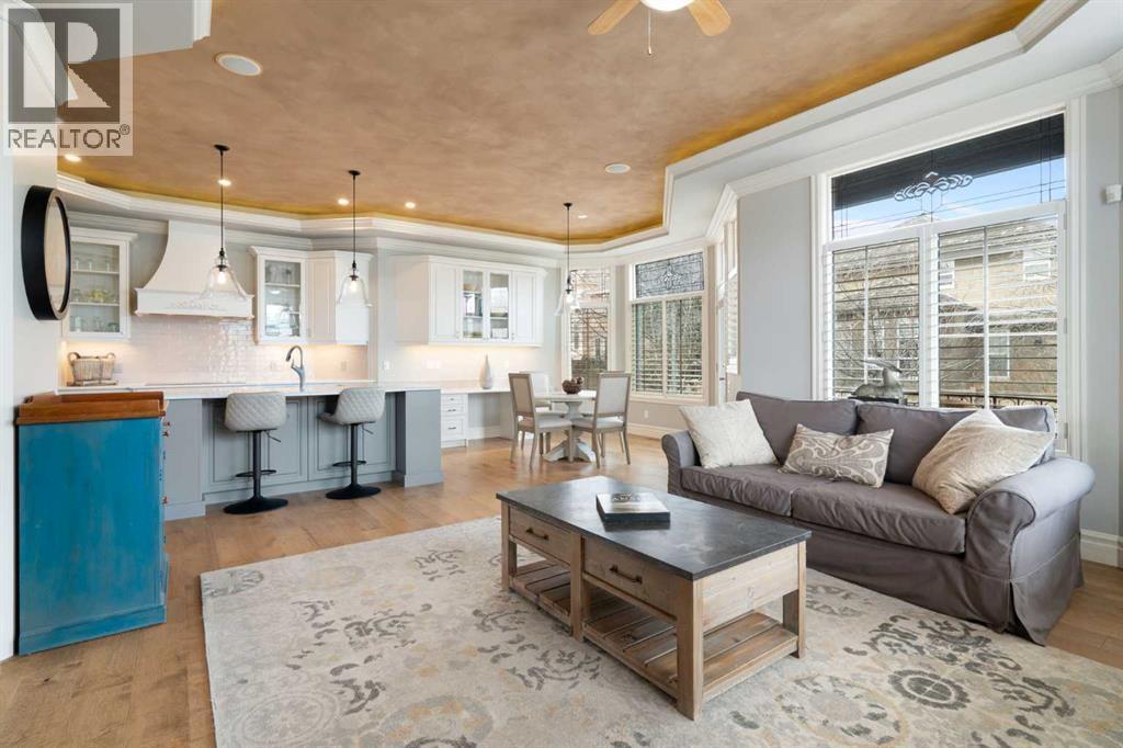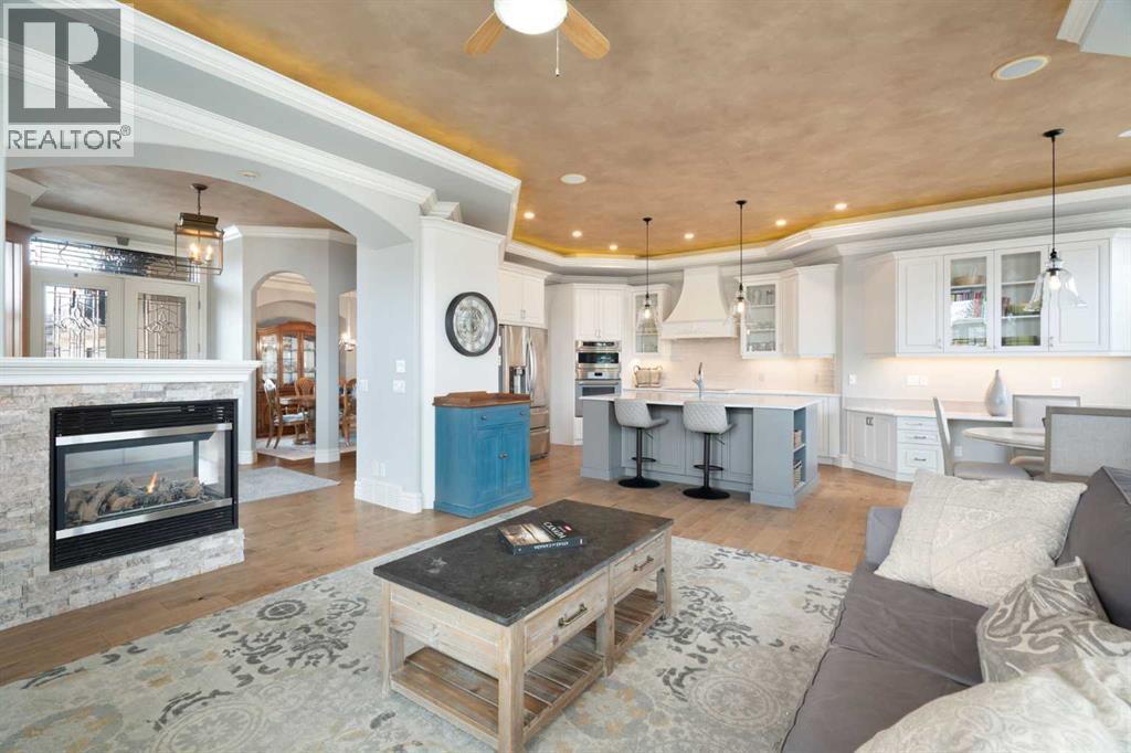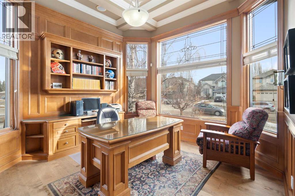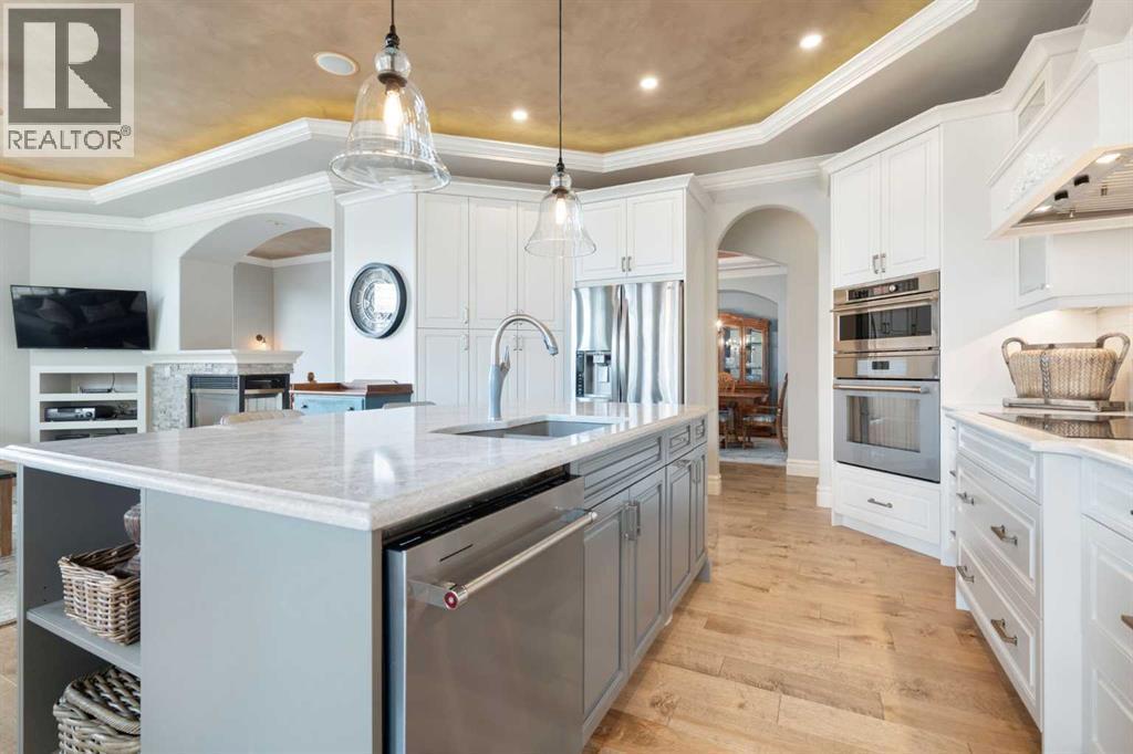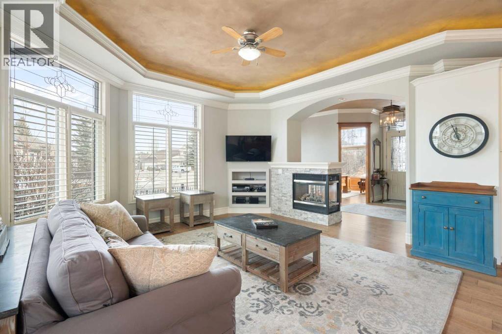Meticulously updated in 2017, this stunning custom-built ShowHome by California Homes occupies a prime corner lot in the highly sought after Evergreen Estates, seamlessly combining timeless elegance with modern sophistication. Boasting over 3,300 sq. ft. of beautifully finished living space, the home offers 4+1 spacious bedrooms, 3 bathrooms, a triple attached garage, in-floor heating on the lower level, a wet bar, Wine room, an irrigation system, central air conditioning and MORE. The extraordinary backyard is designed with maintenance free living, featuring grey paving stones artfully arranged in circular patterns, while the front garage driveway share the same premium paving, uniting the home’s exterior with understated sophistication. Step through the welcoming entry and experience immediate architectural elegance. Rich engineered hardwood flooring lead to the formal dining room, where a multi-tier tray ceiling with intricate detailing and decorative crown moulding that commands attention. Graceful archways frame the space, creating the perfect setting for both intimate dinners and grand entertaining. The chef’s dream kitchen is a masterclass in design and functionality, with custom maple cabinetry accented by crown moulding throughout the home, premium granite countertops, a generous central island, and newer (2022) stainless steel appliances package. Expansive windows bathe the main floor in natural light, creating a bright, warm, and inviting atmosphere throughout. The main level is further enhanced by a spacious home office that can be easily converted into a guest bedroom. A thoughtfully designed mudroom with the additional cabinetry for storage, blending style with practicality. The primary suite on the main floor offers a serene retreat, featuring a spa like 5 pc ensuite with jetted tub, dual vanities, and an expansive walk-in closet. Ascend to the fully finished lower level, with 3 additional generously sized bedrooms, a massive family/game room(po ol table included), a 4-piece bathroom, and a well-appointed wine room with a wet bar. In-floor heating for added comfort and warmth. Located in an unmatched setting, that offers effortless access to schools, shopping, public transit, with seamless access via Stoney Trail, while the natural beauty of Fish Creek Park is just moments away. Rarely does a property of this caliber come to market, schedule your private showing today to experience it for yourself. (id:6769)