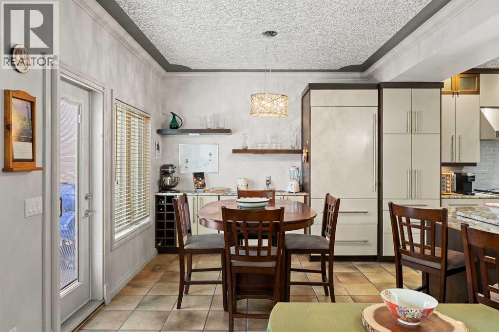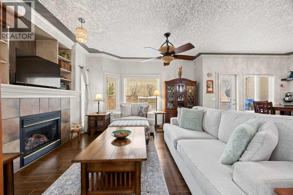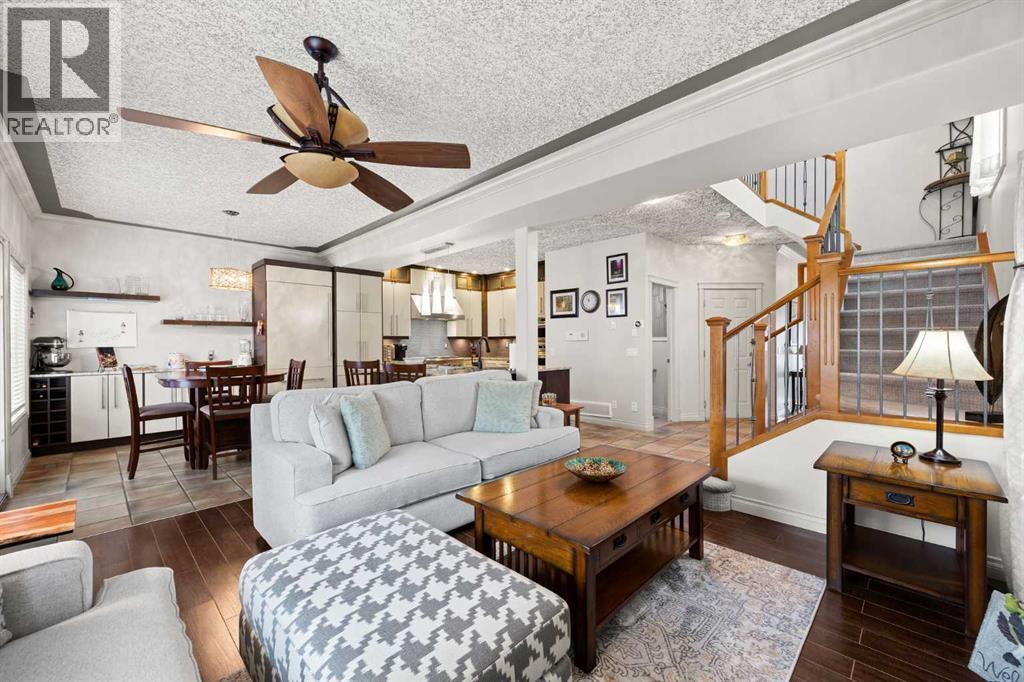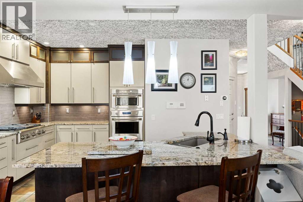 Set within Signal Hill Estates, this beautifully updated executive-style home blends comfort, quality, and thoughtful upgrades throughout. With extensive improvements already completed, this is a residence you can move into and enjoy from day one. The main floor offers an open and inviting layout designed for both everyday living and entertaining. Tiled flooring runs through the entry, kitchen, and dining areas, while warm hardwood anchors the living room, where a gas fireplace creates a welcoming focal point.At the heart of the home is a custom-designed kitchen built with exceptional attention to detail. Full ceiling-height cabinetry provides abundant storage and incorporates soft-close doors and drawers, built-in recycling and garbage, spice storage, and under-cabinet lighting. Premium appliances include a Sub-Zero refrigerator and Monogram gas range with grill, along with a built-in oven and microwave/speed oven. Granite countertops, a subway tile backsplash, custom hood fan, and a generous island complete a space that is both highly functional and beautifully finished.The adjoining dining area opens directly onto a private deck with gas BBQ hookup, creating the perfect setting for summer evenings and outdoor dining. The living room offers a comfortable gathering space centred around the fireplace.Upstairs, the spacious primary retreat provides a peaceful escape, featuring a large walk-in closet and access to a private south-facing balcony with downtown skyline views for much of the year. The renovated spa-inspired ensuite includes a freestanding soaker tub, dual vanity, heated towel rack, and a luxurious steam shower with rain head, body jets, and glass enclosure.The upper level also includes a second bedroom and a flexible bonus room that can easily serve as a home office, media room, or third bedroom. A full bathroom and convenient upper-floor laundry with LG ThinQ high-capacity tower washer and dryer complete the level.The updated basement expands the li ving space with a large recreation room, an additional bedroom, a three-piece bathroom, and excellent storage. Fresh paint and new carpeting create a bright and comfortable environment for guests or family living.Numerous upgrades throughout the home enhance both comfort and efficiency, including triple-pane windows, central air conditioning, a new hot water tank, refurbished furnace, upgraded attic insulation, water softener, updated lighting with dimmers, high-quality ceiling fans, USB outlets, Nest thermostat, Phantom screen doors, and replaced door springs.The heated double attached garage is meticulously maintained and professionally serviced annually. The condominium board has also completed significant exterior improvements, including a new roof, upgraded eaves and downspouts, sealed driveway, new upper deck and railing, and enhanced irrigation. Combining thoughtful upgrades, executive comfort, and a prime location, this is a home that truly stands apart. (id:6769)