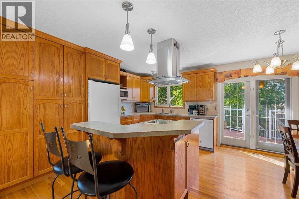 OPEN HOUSE SATURDAY March 14, 2:30 - 4:30 PM & SUNDAY MARCH 15, 2 - 4 PM. Step inside this bright and beautifully reconfigured 4-level split, where thoughtful updates and inviting living spaces create the perfect blend of comfort and style. You’ll love the real hardwood floors, updated lighting, and newer windows that fill every room with natural light. Elegant French doors add a touch of sophistication and seamless flow throughout the home.The open-concept oak kitchen is an entertainer’s dream, featuring a center island with eating bar, ample cabinetry with built-in pot drawers, a pantry, and a charming corner china cabinet that enhances the adjacent dining area. Personalize your custom kitchen - refinish or stain with a colour that makes it your own. Retreat to the spacious primary suite, complete with double closets and a beautifully updated ensuite showcasing a large tiled stand-up shower and stone countertops—your own private spa experience.The walkout level, open to the dining area above, offers a cozy family space with a built-in feature wall and wood-burning fireplace, plus direct access to the attached garage.Step through the French doors to your west-facing backyard oasis—private, treed, and professionally landscaped. Enjoy outdoor living on the two-level Dura Deck, accessible from both the dining and family rooms—perfect for morning coffee or evening gatherings.A large shed with alley access features an oversized garage-style door, ideal for storing outdoor equipment, quads, or snowmobiles. The parking pad easily accommodates up to a 22-foot trailer, and both the house and shed feature new asphalt shingles for peace of mind.Downstairs, the spacious recreation room offers plenty of storage, including a crawl space, plus a laundry area with updated appliances and custom shelving. This home truly combines thoughtful design, functionality, and outdoor enjoyment—ready for you to move in and make it your own. (id:6769)