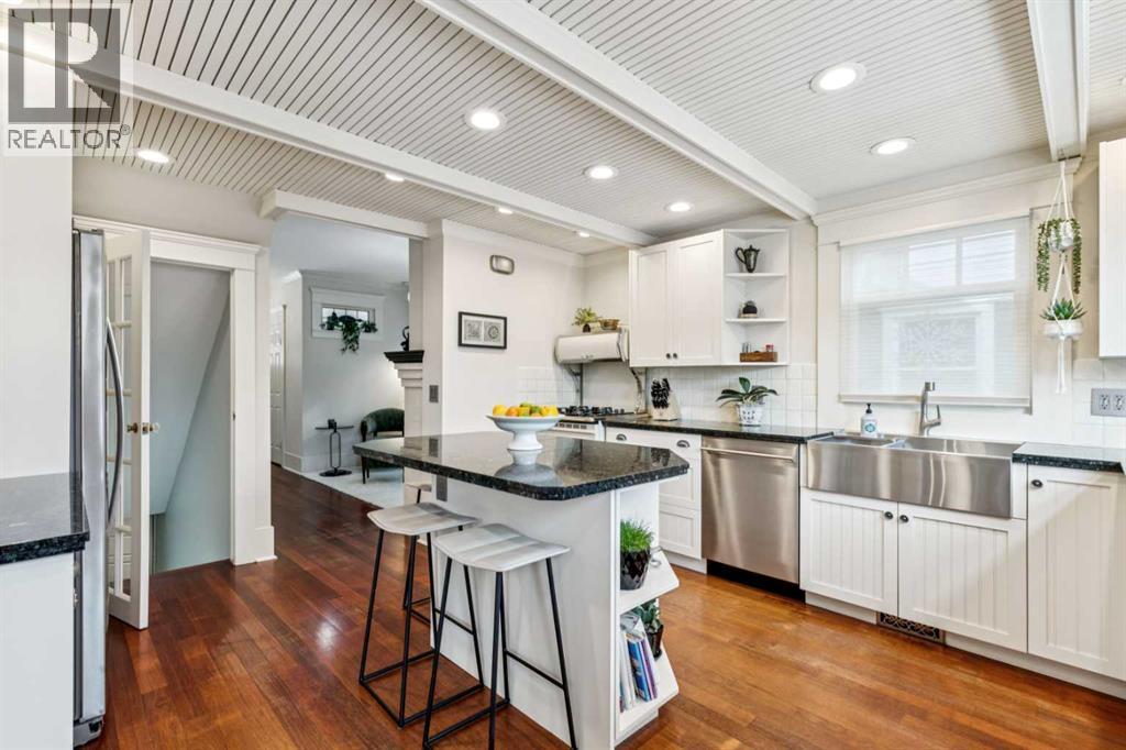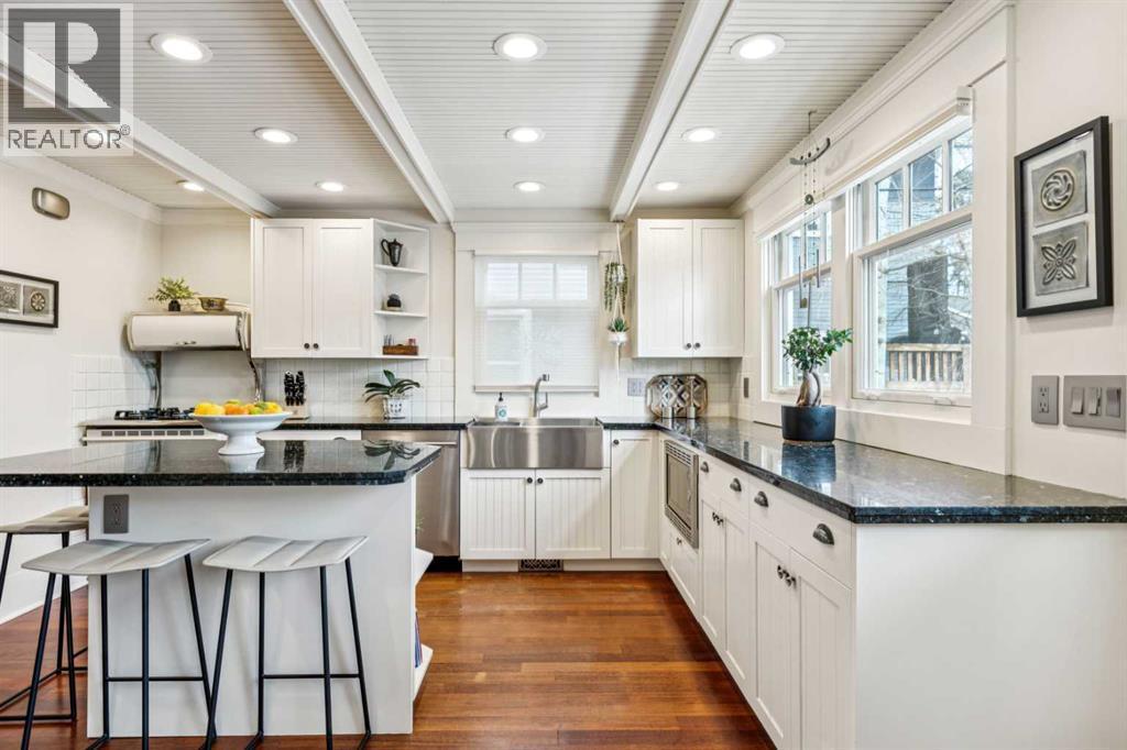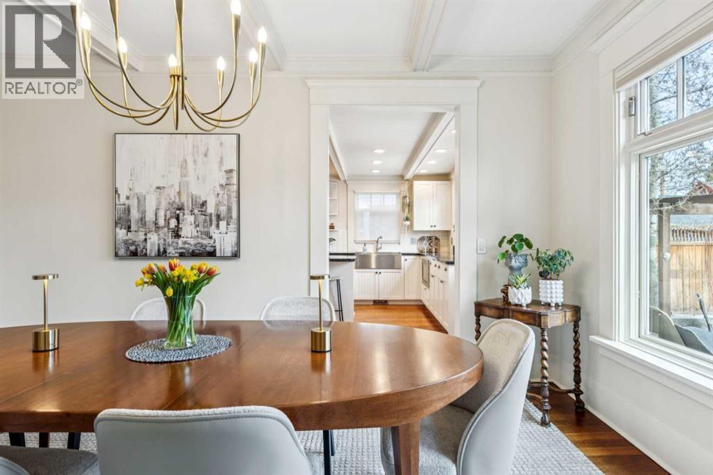 OPEN HOUSE Saturday March 14th from 2-4. Don't miss out on this charming, beautiful move in ready 2 story, 4-bedroom home boasting 2946sqft of living space. When you enter the home, you will notice that the bright living room and large dining room have maintained their charm, with impressive details including exotic hardwood floors, coffered ceilings and two gorgeous decorative fireplaces. On this level, there is also an inviting sitting room, half bath and spacious updated kitchen with granite, stainless steel appliances, island and nurtural cabinetry. The upper level has an ideal layout with a huge master bedroom with a walk-in closet, an extra closet and a spa like ensuite. This level is also home to 2 more good sized bedrooms, laundry room and a spacious family bath perfect for two kids to share. The lower level includes a large family room, den/bedroom, loads of storage and an immaculate updated mechanical room. Enjoy the low maintenance back yard with BBQ gas line, large west facing front porch and insulated double garage. Updates include Hunter Douglas blinds throughout, most windows on the main level updated with automated blinds and all upper-level updated double hung Pella windows that open from top to bottom for amazing summer airflow. Other updates are newer washer/dryer and fridge all 2024, redone front and back decks, new Pella front door and exterior paint all done in 2025, two sump pumps and back flow valve. Enjoy the stunning perennial rock garden in the front yard and treed back yard for summer privacy with quaking aspens, chokecherry, nine bark and rare river birch. Walk to amazing schools, river path, shopping and the Glencoe form this prestigious address. (id:6769)