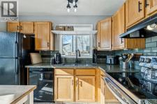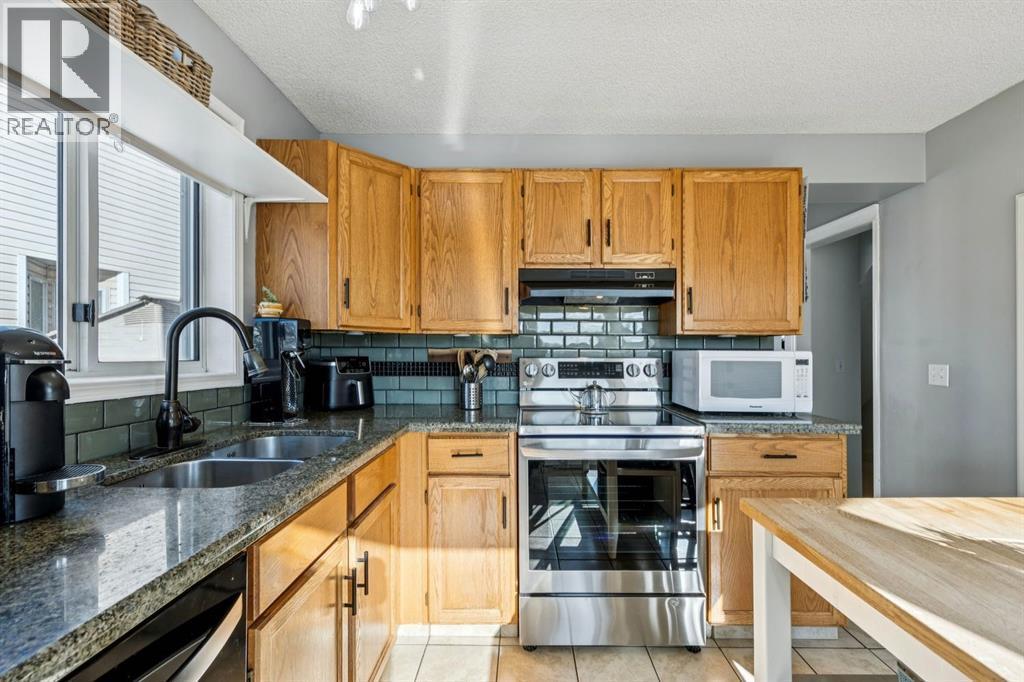 Located on a quiet street in the desirable community of Riverbend, this 3-bedroom, 2-bathroom home sits on a west-facing pie lot and features an oversized two-car garage backing onto a paved alley. The home offers excellent curb appeal with a new roof and siding (2025). Inside, you are welcomed by updated laminate flooring, a beautiful bay window, and an open-concept living and dining space. The kitchen is equipped with granite countertops and an updated stove, dishwasher, and garburator, along with another west-facing bay window overlooking the generous backyard. The main floor also includes a convenient back entrance and a half bath. The upper level contains three bedrooms and a four-piece bathroom. The primary bedroom is spacious enough for a king-sized bed and includes a well-sized closet. The basement provides additional living space for a family room, playroom, or gym, as well as a laundry room with cabinets, a sink, and extra storage. The exterior is a standout feature, boasting a mature, west-facing yard filled with trees, perennials, and an inground sprinkler system. Recent mechanical upgrades include: Roof and Siding (2025), Hot Water Tank (2025), Garburator (2025), Dishwasher (2024), Air Conditioning (2023), Stove (2023), This property is just steps from parks, playgrounds, and schools, while remaining highly accessible to major roadways and commercial areas. (id:6769)