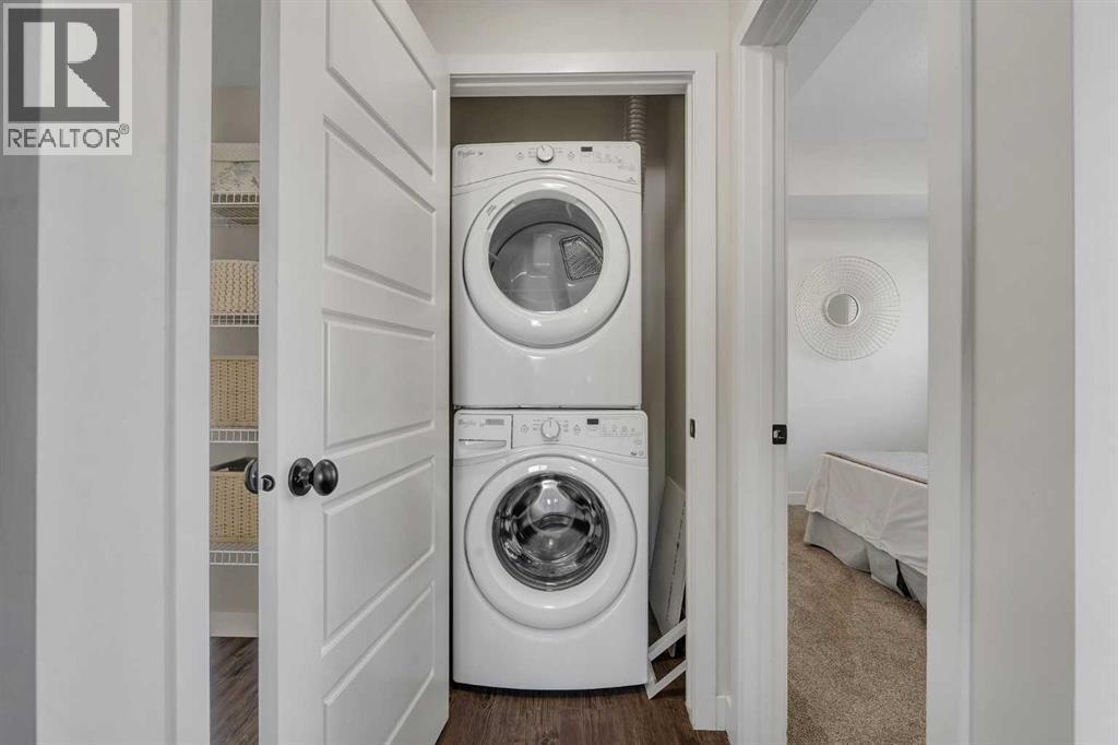 OPEN HOUSE THIS SUNDAY, MARCH 15TH, 1-3 PM! Ok, this townhome is the loveliest. But it’s not just the pretty that counts, the functionality matters too, and this unit comes with TWO parking stalls (one assigned & 1 titled) and central air conditioning! Located on the top level, it offers an abundance of windows and a west-facing deck. Inside, the rich vinyl floors and new carpet give it a modern feel. The kitchen has a central island, a corner pantry, and granite countertops. The primary suite is spacious with a walk-through ensuite that includes an updated vanity and a large shower and leads to the walk-in closet. There is a second bedroom, a 4-piece bathroom, in-suite laundry, and storage within the unit (see front closet on the floor plan!). This is a pet-friendly complex (subject to approval) with a well-run board. Great Airdrie location in a quiet neighbourhood. Immediate possession available. (id:6769)