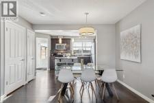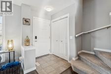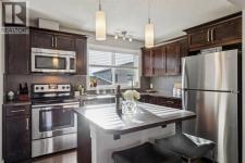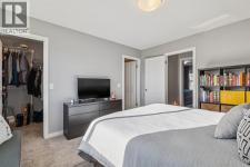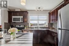 Welcome to this charming classic Tudor-style semi-detached home, perfectly situated in the highly desirable community of Cranston. Ideally positioned within walking distance to local schools and the scenic walking paths along the ridge, this property offers a seamless blend of convenience and timeless appeal. The interior reveals a highly functional open-plan living space enhanced by durable laminate flooring, leading you into a spacious living room where large windows allow natural light to flood the area. Adjacent to this, the dining area comfortably accommodates six guests without compromising on flow or space, making it perfect for intimate gatherings. The heart of the home is the well-appointed kitchen, featuring an abundance of wood cabinetry, a stylish tiled backsplash, and stainless steel appliances. The design includes a practical eat-up island with additional storage and a pantry, all while offering pleasant views of the south-facing backyard. A convenient powder room and a mudroom round out the main level, providing direct access to the outdoors. Step out onto the large private deck to entertain friends or simply relax while taking in evening views of the sun setting over the glorious Rocky Mountains. The exceptionally long yard ensures you never have to compromise on green space, even with the gravel parking pad that offers ample room for a future garage. Upstairs, the home is uniquely designed with two expansive master suites, making it an ideal layout for varied lifestyle needs. Each suite boasts its own four-piece ensuite bathroom and walk-in closet, with one room offering stunning views of the mountains. The basement houses the laundry facilities and awaits your creative touch for future development. With easy access to Stoney and Deerfoot Trails, and just moments away from the comprehensive amenities at Seton, including the YMCA and South Health Campus, this home provides an exceptional opportunity to enter a vibrant community. (id:6769)