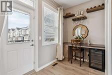 Stylish Jayman townhome offering over 1,500 sq ft of developed living space, a true heated double side-by-side garage, central air conditioning integrated with the HVAC system, and a brand new roof completed in 2025. Welcome to low-maintenance living in the sought-after community of Nolan Hill.The bright open-concept main floor features rich Alpine Oak laminate flooring and a designer kitchen with stainless steel Whirlpool appliances, elegant Shaker cabinetry, and generous counter space. A spacious breakfast nook flows into the inviting living area highlighted by a custom feature wall, mantle, and electric fireplace.This home includes approximately $15,000 in upgrades, including Hunter Douglas blinds, vinyl flooring on the staircase, the custom fireplace feature wall, and smart home features such as a Google Nest thermostat, smart WiFi keypad door lock, and a camera security system.Upstairs are three bedrooms including a comfortable primary suite, two full bathrooms, and convenient second-floor laundry. The lower level offers a versatile den ideal for a home office or recreation space. Enjoy relaxing on the balcony, while the heated double garage provides secure year-round parking and storage.Well-maintained and thoughtfully upgraded, this move-in ready home offers exceptional comfort, style, and convenience. (id:6769)