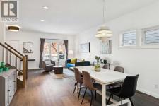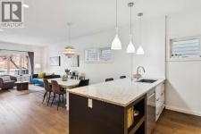Looking to enter West Hillhurst, but don't want to sacrifice space or quality? Welcome to #1, 2421 2 Avenue NW: a beautiful front-facing 3-storey townhouse in sought-after West Hillhurst offering over 2,500 sqft of total living space, including a fully developed basement. The home sits at the front of the complex with a welcoming front deck and aggregate concrete exterior, and includes one stall in the detached garage off the back lane along with a visitor parking pad. The main floor features 9-foot ceilings, an extra-wide front door, hardwood flooring, and an open-concept living room, dining area, and kitchen, plus a convenient half bathroom with quartz countertops and tile floors. The kitchen includes stainless steel appliances, an in-wall oven, an induction stovetop with range hood, quartz countertops, pantry storage, a bar fridge, and a microwave replaced in 2023. Soundproofing between units is exellent, and solid doors are installed throughout the home. On the second floor, you will find 2 carpeted bedrooms, laundry, and a full bathroom with quartz countertops, tile floors, and a tiled tub/shower combination. The primary bedroom also includes a large private ensuite with dual sinks, quartz countertops, a tiled shower, and a large soaker tub. The incredible top floor is a bright and versatile space with vaulted ceilings, skylights, a ceiling fan, and a Juliet balcony, making it ideal for a bedroom, office, workout space, playroom, or media room. The developed basement offers new carpet, a large rec room with wet bar, a spacious bedroom, and a full bathroom with quartz countertops, tile floors, and a tiled tub/shower combination, along with the boiler system. Carpet throughout the top two floors and basement was replaced in 2022, and shingles were replaced in 2023. Maintenance fees are a low $418 per month and include reserve fund contributions, snow removal, annual exterior window cleaning, exterior insurance, and electricity for the garage. Located in the highl y desirable community of West Hillhurst, this home is within walking distance to the amazing Bow River pathway system, close to a grocery store, and near several schools and local amenities, with quick access to downtown and Kensington. Book your showing before it's too late! (id:6769)