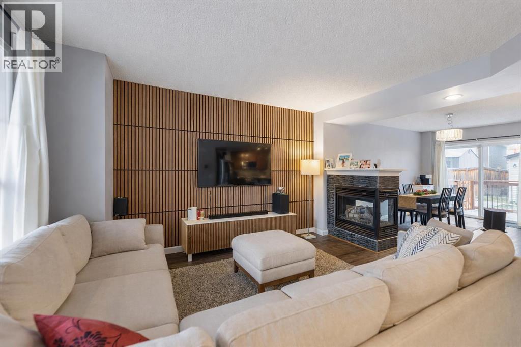 Welcome to a beautifully cared-for home in one of SE Calgary’s most loved communities. This inviting 2-storey sits on a quiet street in New Brighton and delivers the ideal blend of comfort, style, and value — perfect for first-time buyers, small families, or anyone ready to step into a detached home without compromise. Inside, you’ll find a bright, open main floor with newer flooring, and a warm 3-sided fireplace that anchors both the living and dining areas. All appliances were updated in 2023, giving you peace of mind and modern efficiency. The flow is natural, functional, and made for real life. Large sliding doors lead you to a spacious deck and a fully fenced, landscaped backyard — already complete with a double detached garage built in 2024 for secure parking, storage, or a future workshop. Upstairs features three bedrooms, including a generous primary with a walk-in closet. The lower level is undeveloped and ready for your vision, whether that’s a family room, gym, office, or additional bedroom. Homes in this condition at this price point don’t sit long in New Brighton. This one checks every box: updated interior, great layout, new appliances, new garage, quiet location. Come see why this is the starter home everyone will be talking about. (id:6769)