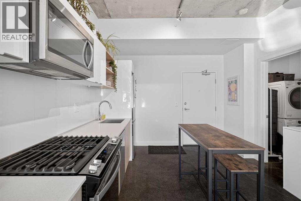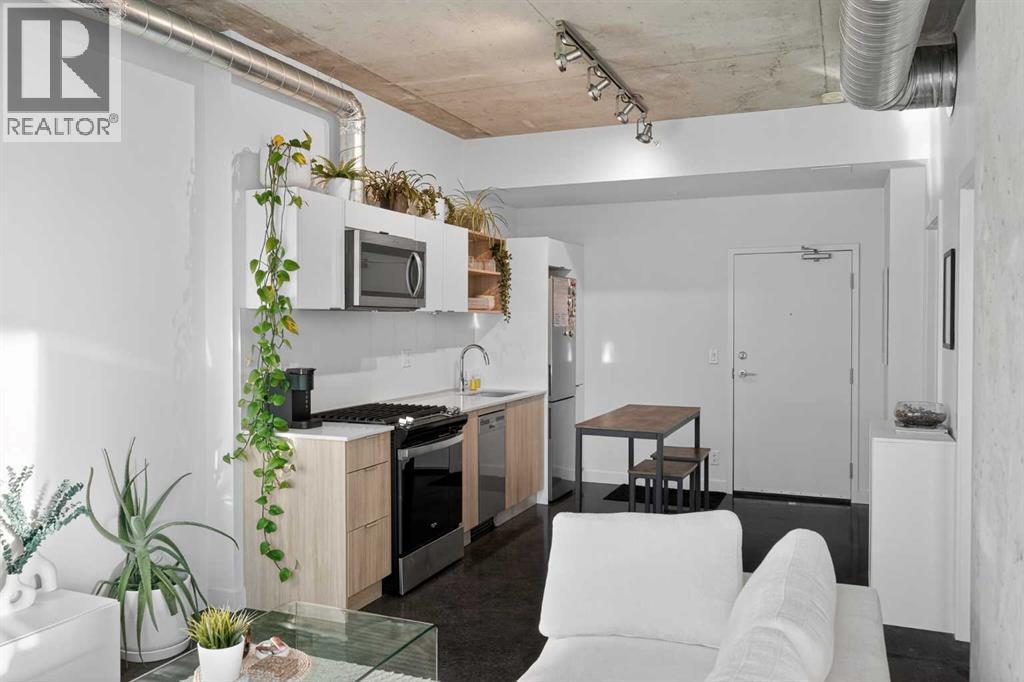 Welcome to NUDE by Battistella, a building designed for those who appreciate authenticity and architectural grit. This isn’t your cookie-cutter condo; with its open-concept industrial ceilings, exposed ductwork, and sleek polished concrete floors, this one-bedroom unit offers a New York loft aesthetic right in the heart of Calgary’s Beltline. Step inside to an airy, sun-drenched sanctuary that is a rare find. Located on the second floor, this unit boasts an oversized, south-facing balcony that acts as your own private urban terrace. Whether you are hosting a summer BBQ or soaking up the afternoon sun, this massive outdoor extension of the living space is a true game-changer. The minimalist kitchen features stainless steel appliances, a gas cooktop, and beautiful light wood cabinetry. Practicality meets style with in-suite laundry, central air conditioning, and floor-to-ceiling windows. This unit comes complete with its own underground titled parking stall and an assigned storage locker for all your extra gear. NUDE is a community designed for the modern professional, offering a penthouse resident lounge and an expansive rooftop patio with 360-degree city views. Guest logistics are a breeze with underground visitor parking stalls—a rare luxury for downtown living. This is a pet-friendly building where both dogs and cats are welcome with registration and board approval, and it even features a convenient dog wash station. For the urban commuter, there is secure bicycle storage and a dedicated maintenance workshop. Boasting a near-perfect Walk Score, you are just blocks from the vibrant shops and restaurants of 17th Ave SW. Experience the perfect blend of raw industrial design and premium urban convenience in the ultimate Beltline statement piece. (id:6769)
