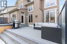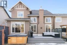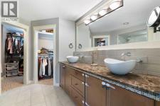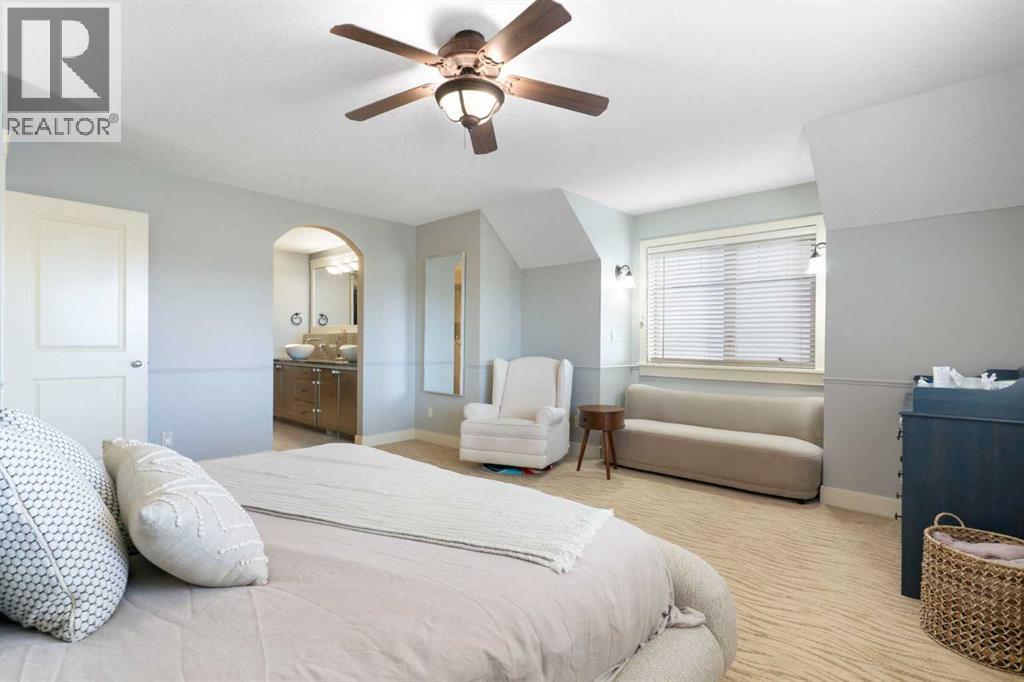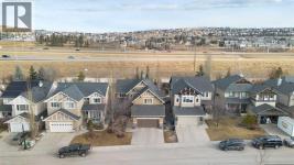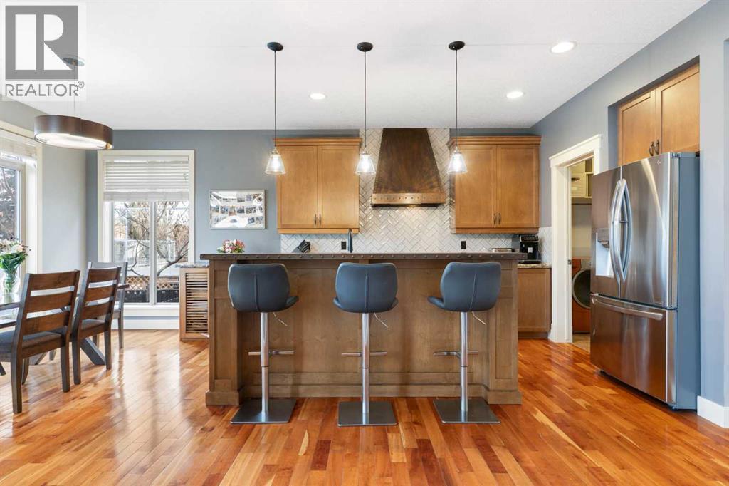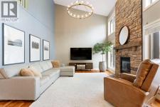 Welcome to the newest family home to hit the market in the beautiful community of Discovery Ridge. This property showcases unique and tasteful copper accents including the front door, hood vent, and eating bar. A covered front porch leads into a spacious entry, private front office, convenient mudroom, walkthrough laundry and pantry, and a beautifully appointed kitchen with white herringbone tile backsplash, wet island, rich hardwood floors, and a bright eating nook. The open-to-above living room features soaring two-storey vaulted ceilings, a stone fireplace with a hearty wood mantle, and a wall of windows overlooking the landscaped backyard, composite deck, and patio. Upstairs offers a thoughtful layout with three bedrooms (no shared walls), open rail staircase, full bath, and a generous primary retreat with double walk-in closets and a large ensuite with steam shower. The fully developed basement includes a gym, guest bedroom with 3-piece ensuite, spacious recreation areas, fireplace feature wall, and ample storage. Comfort is enhanced year-round with the addition of central air conditioning. With over 3,100 sq ft of developed space, 4 bedrooms, 3.5 bathrooms, and a double attached garage, this turn-key home is ready to welcome a new family. Residents of Discovery Ridge enjoy exceptional access to green space and nature, including nearby Griffith Woods Park with forested pathways along the Elbow River, along with playgrounds, sports courts, and convenient local retail amenities — all within a peaceful, tree-lined setting with excellent connectivity to major routes and west-side shopping hubs. (id:6769)