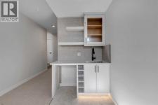 Welcome to THE SEVEN, an exclusive collection of seven luxury residences in the heart of Glenbrook, one of Calgary’s most sought-after inner-city communities. The opposite side of this semi-detached residence is also available, offering an alternate lighter designer finish palette. This particular home is a three-storey semi-detached residence (half duplex) offering 4 bedrooms and 4.5 bathrooms, including 3 private ensuites, thoughtfully designed for elevated urban living just minutes from downtown.Step inside to a spacious main floor where a generous living room welcomes you with striking dark flooring flowing throughout and a beautifully tiled fireplace that creates a warm, inviting focal point. The designer kitchen is built for both everyday living and entertaining, featuring a large statement island, built-in oven and microwave, gas cooktop, and a pantry for seamless storage. The dining area provides the perfect setting for hosting dinner parties or relaxed family meals, while the stylish powder room delivers a boutique-hotel inspired feel for guests. A functional mudroom is tucked away at the rear, offering a separate entrance to the backyard and detached garage.The second level features two spacious bedrooms, each complete with its own private ensuites providing comfort and privacy for family or guests. A dedicated laundry room with additional cabinetry adds everyday convenience.Occupying the entire third floor, the grand primary retreat is a true sanctuary. Enjoy vaulted ceilings, elegant wall sconces, and a statement chandelier above the bed, along with direct access to a private balcony—perfect for morning coffee or evening relaxation. The spa-inspired ensuite features a dual vanity, stunning tile work, and a glass-enclosed shower, while the walk-in closet is finished with custom shelving and built-in cabinetry.The fully developed basement expands the living space with a large recreation room, a stylish wet bar with under-cabinet lighting, an additi onal bedroom, and a full bathroom—ideal for guests, entertaining, or movie nights.Outside, the home’s exterior showcases a modern stucco façade accented with warm Hardie board details, creating striking curb appeal. Residents also enjoy a shared landscaped green space and access to the detached garage.Located in the vibrant community of Glenbrook, you’re just minutes from downtown Calgary while enjoying the charm of established inner-city living, with nearby parks, schools, restaurants, and everyday amenities all within easy reach.Experience sophisticated design, modern comfort, and urban convenience at THE SEVEN. Power lines digitally removed from exterior images for presentation purposes. (id:6769)