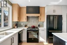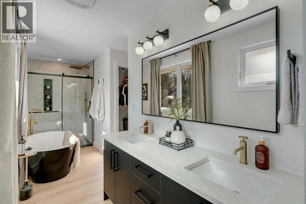 **SUNNY SOUTH BACK YARD | BEAUTIFUL RENOVATION | TRIPLE PANE WINDOWS **Renovations by Modern Evolution Design ,Tucked into an incredible location just steps from the natural beauty of Fish Creek Park, this home is the definition of a complete transformation. Fully renovated from top to bottom with meticulous attention to detail, it offers a rare blend of thoughtful design, high-end finishes, and everyday functionality. With miles of walking and biking paths practically at your doorstep—and the renowned Bow Valley Ranche Restaurant only minutes away—you’ll love the lifestyle this location provides. Inside, the main floor feels bright, open, and welcoming, thanks to an abundance of natural light streaming through new triple-pane windows. The kitchen is truly the heart of the home and has been designed to impress even the most discerning buyers. Outfitted with all-new appliances including an induction stove, it features quartz countertops, soft-close cabinetry, a beautifully designed island, and plenty of workspace for cooking, gathering, and entertaining. The living room offers an expansive and comfortable setting, anchored by a striking custom feature wall and gas fireplace—perfect for cozy evenings or hosting friends and family. The main level also features two generously sized bedrooms, including a stunning primary retreat. The five-piece ensuite feels spa-inspired with a double vanity, soaker tub, and separate shower. The primary suite also includes two closets, highlighted by a gorgeous walk-in closet that feels more like a boutique dressing space.Downstairs, the fully finished basement expands the living space beautifully. Here you’ll find two additional spacious bedrooms, a stylish three-piece bathroom, a convenient dry bar, and a large entertainment area that’s perfect for movie nights, guests, or family gatherings. Step outside to a sunny south-facing backyard that’s fully fenced and ready to enjoy—whether that’s relaxing on warm evenings or hosting summer g et-togethers. The oversized double garage provides exceptional space for vehicles, storage, hobbies, or a workshop. Homes that undergo renovations at this level are incredibly rare. With its unbeatable location near parks, pathways, and amenities, combined with the quality of craftsmanship throughout, this is a property that truly stands apart. (id:6769)