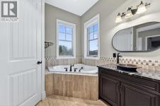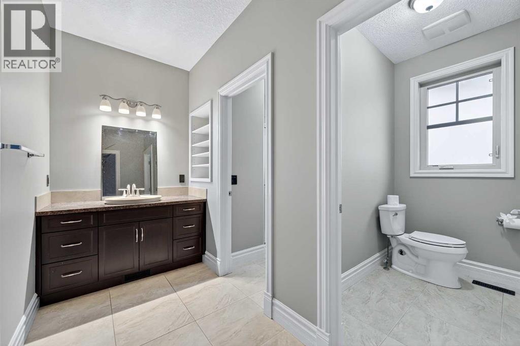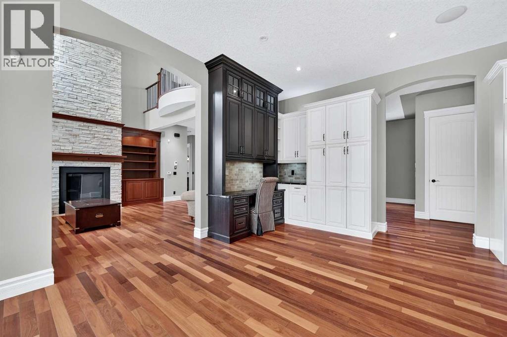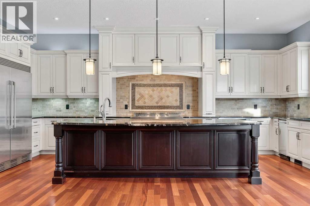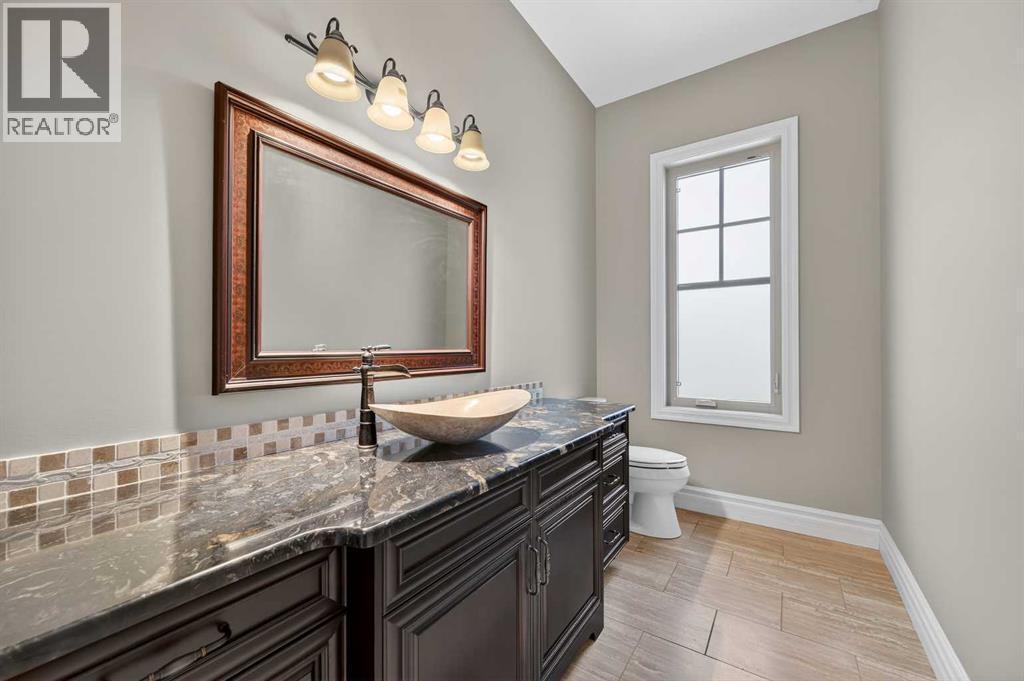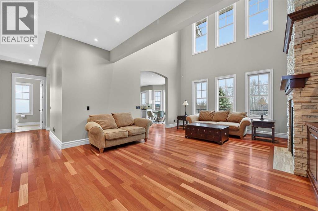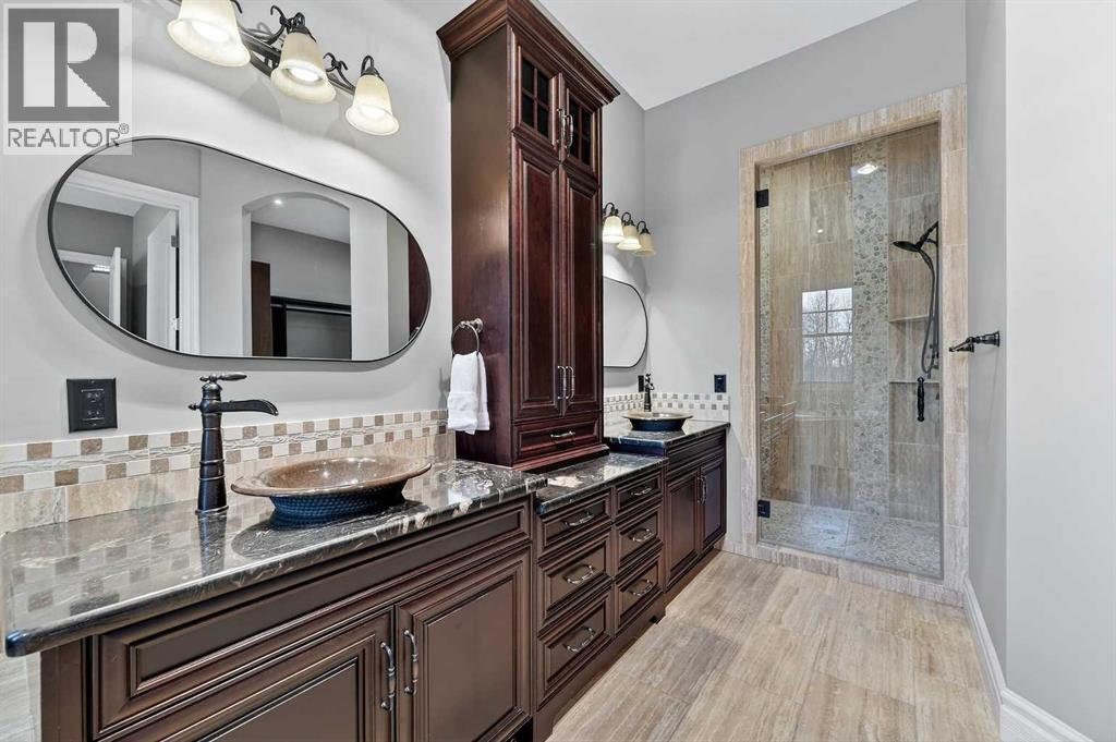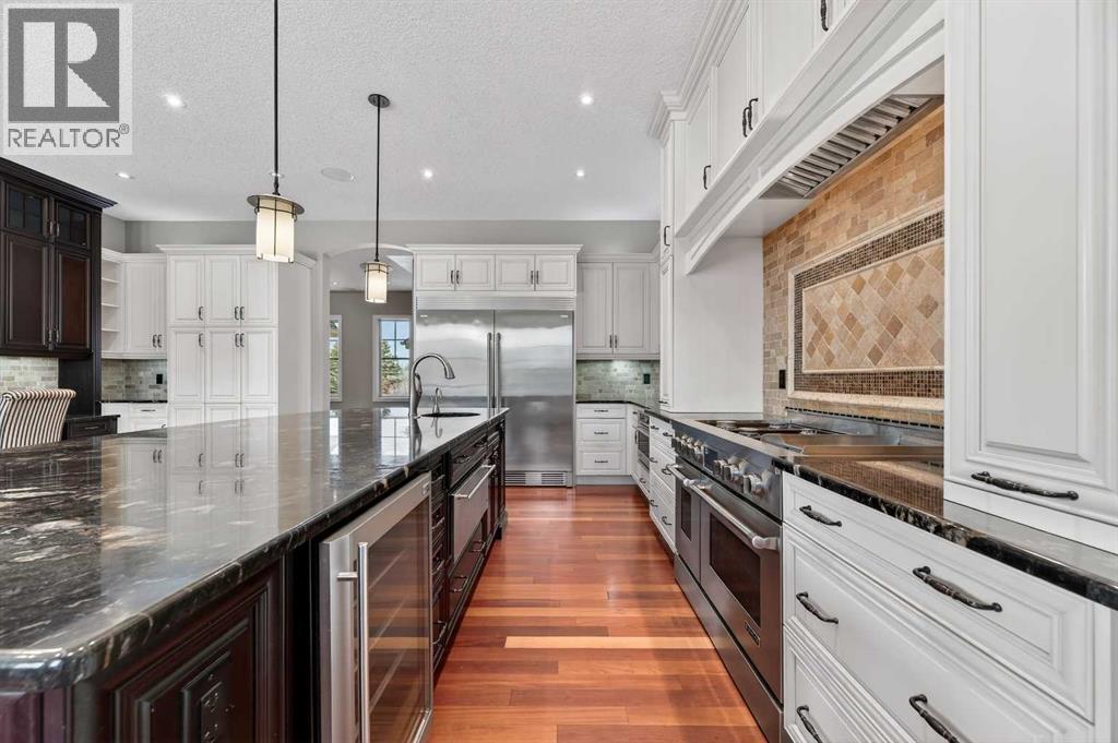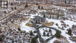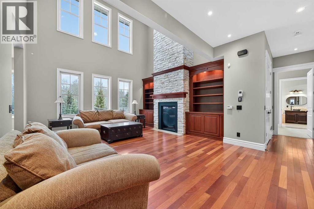 As you drive up your private lane, lined with mature trees and lush shrubbery, you arrive at a stunning, beautifully designed home. From the foyer, your eyes are immediately drawn into the family room, where a striking 20-foot stone fireplace anchors the space. The windows frame views of the backyard, highlighted by majestic trees and greenery. You will be delighted with the gourmet kitchen, featuring a large 10-foot island with seating area, gorgeous granite countertops, stylish backsplash, silgranit under-mount double sink, S/S appliances including a Jenn-Air 48” dual fuel, 6 burner gas cooktop with grill & dual ovens, custom wood hood-vent, Jenn-Air built-in oven, double door refrigerator/freezer, built-in dishwasher, trash compactor, wine fridge, & built-in warming drawer. A built-in desk with upper cabinetry adds valuable functionality and elevates the kitchen's overall design. An inviting eating area offers lovely views of the trees and the natural, forest-like surroundings. Additionally, a formal dining room creates the perfect setting for memorable gatherings. The eating area and the primary suite both enjoy access to the expansive deck, complete with a BBQ hookup. You can choose between two primary suites, one located on the main floor and the other on the upper level. The main floor primary ensuite features a jetted tub, double vanity, and a steam shower. Two additional 2-piece bathrooms complete this level. The upper level offers a striking open-to-below catwalk and multiple desk nooks, perfect for study or remote work. The upper primary bedroom has a dedicated desk nook, a well-appointed 3-piece ensuite and a walk-in closet for added convenience. There are two additional bedrooms with a thoughtfully designed Jack-and-Jill bathroom. A large bonus room, ideal for movie nights, anchors the upper floor, along with a laundry room and a handy 2-piece bath. An impressive oversized heated 3-car garage offers generous space for vehicles, storage and hobbies, with convenient access to the basement and the main level. What truly sets this private estate apart is its 21 acres of stunning forested grounds, with trees, shrubs, and open spaces. It’s your chance to reconnect with nature since you’re sure to catch a glimpse of the local wildlife. You’ll also appreciate the convenience of the Priddis General Store for last-minute essentials, along with a service station, a local restaurant and bar, and a cozy coffee shop for a quick pick-me-up. Priddis Greens Golf and Country Club is in close proximity, offering personal and corporate memberships. With Bragg Creek, the Millarville Farmers’ Market, scenic parks, hiking, mountain biking, horseback riding trails and numerous campgrounds just a short distance away, the opportunities for recreation and relaxation are endless. There’s truly no better place to call home than this incredible Priddis property. This property is undergoing subdivision. The remaining 138 acres is also available for $2,220,000. (id:6769)