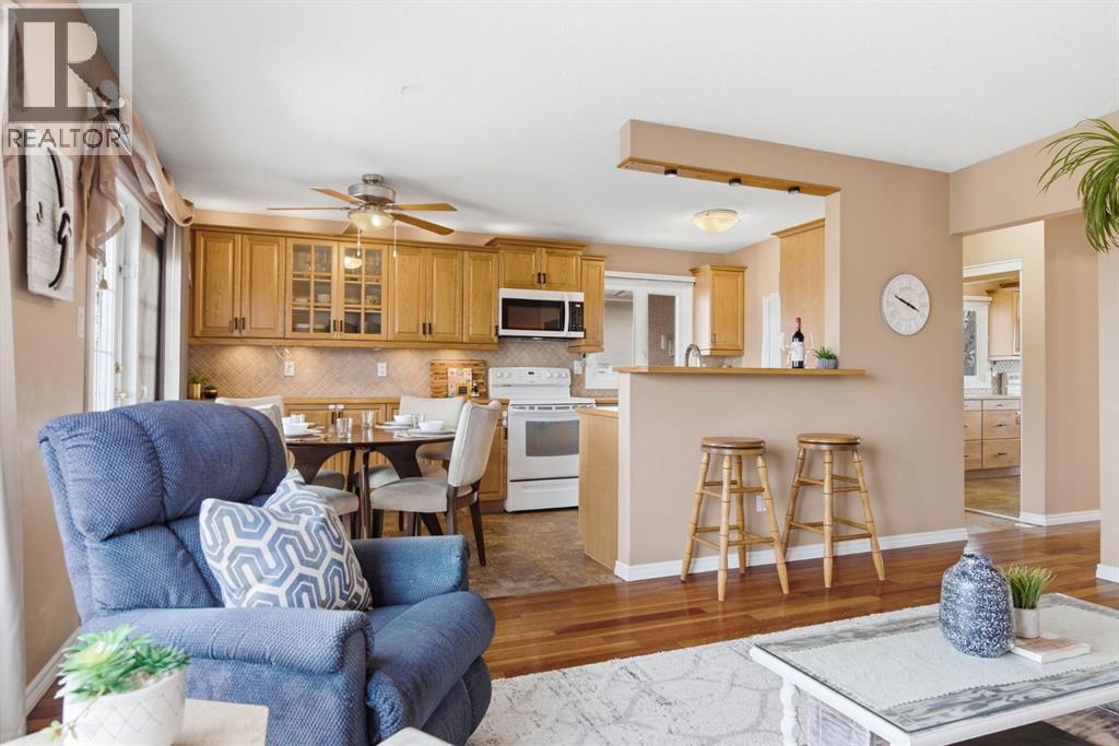 Discover practical comfort and great value in this well-designed Huntington Hills bi-level duplex. With almost 2,000 square feet of developed living space and no condo fees, this home provides plenty of room for families or anyone seeking affordability without compromising on quality. Step inside and you’ll notice the vaulted ceilings and hardwood floors, creating an open and inviting atmosphere that feels both spacious and welcoming. At the center of the home is a functional galley-style kitchen with extended wood cabinetry, offering plenty of storage for all your cooking needs. The eat-up peninsula island and tiled backsplash add style and convenience, making meal prep and casual dining a breeze. The dining area opens onto a spacious east-facing deck, making it the perfect spot for enjoying your morning coffee or hosting a weekend barbecue while taking in the sunrise. Down the hall, the main level features three comfortable bedrooms, each with a walk-in closet for added storage. One of these rooms provides direct access to the spacious west-facing yard, making it ideal for a home office or flexible family space. A well-maintained full bathroom with a tiled surround serves the main floor, offering both style and practicality. Head downstairs to a bright and spacious family room with plenty of natural light. This level also includes a large 4th bedroom, lots of practical storage space, and a clean, well-kept full bathroom with a walk-in corner shower. The thoughtful layout makes it easy to enjoy both comfort and convenience throughout the home. Step outside to a generous backyard that offers great value and practical features for everyday living. Enjoy attractive landscaping, a patio pathway, and a cozy sitting area perfect for relaxing or entertaining during summer evenings. There's a convenient gas line for your firepit or barbecue, and the yard has plenty of space if you ever want to add a double garage, all without giving up your outdoor enjoyment. This home off ers many upgrades, including a new furnace (2025), a hot water tank (2024), and newer fencing.  Located in a well-connected neighbourhood, this home offers everyday convenience and excellent value. Families will appreciate being located adjacent to Catherine Nichols Gunn School and just a ten-minute walk from respected local schools like St. Helena School and John G. Diefenbaker High School. All your shopping, dining, and entertainment needs are easily met with Deerfoot City, less than five minutes away. Commuters will benefit from great transit options and quick access to both Calgary Airport and Downtown—each only a ten-minute drive. This bi-level duplex brings together quality, comfort, and a prime location at an affordable price point, making it a smart choice for anyone looking for their next home. (id:6769)