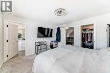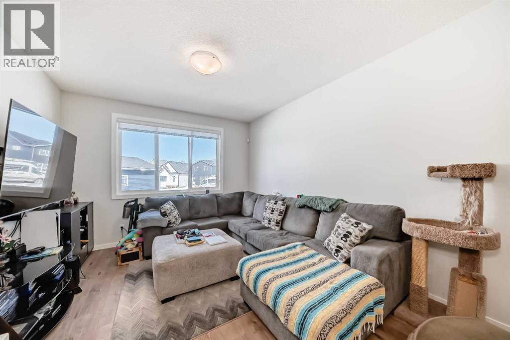 Welcome to this exceptional 2,200+ sq ft air conditioned three-storey home in the vibrant community of Livingston —a property thoughtfully designed for generational living without compromising style or comfort.Step inside to a bright, open main level featuring 9 ft ceilings & luxury vinyl plank flooring. The main floor includes a spacious bedroom and a full 3 piece bathroom, ideal for multi generational families, guests, or a private home office.At the heart of the home, the modern island kitchen impresses with smart Samsung appliances, Quartz countertops, ample cabinetry, pantry and seamless flow into the dining and living areas—perfect for everyday living and entertaining.Upstairs, you’ll find three generous bedrooms, including a serene primary suite, complete with a walk-in closet and 5 pce ensuite with heated floor, along with convenient laundry, 4 pce bath and well-appointed secondary bedrooms.The third level elevates your lifestyle with a large recreation room and access to a covered rooftop patio offering beautiful mountain views—a rare and highly desirable feature in the community. The basement includes a 1 bedroom illegal suite, complete with its own kitchen, living area and laundry, providing excellent flexibility for extended family. This home is fully equipped with triple-pane windows and on demand hot water to enhance energy efficiency and year-round comfort.Outside, a heated triple detached garage offers abundant parking and storage. Rounding out this home’s impressive list of features is 220 Amp power and water softener/dechlorinater and exterior soffit lighting.Located in one of Calgary’s fastest-growing master-planned communities, this property delivers space, versatility, and modern comfort in a prime location. (id:6769)
