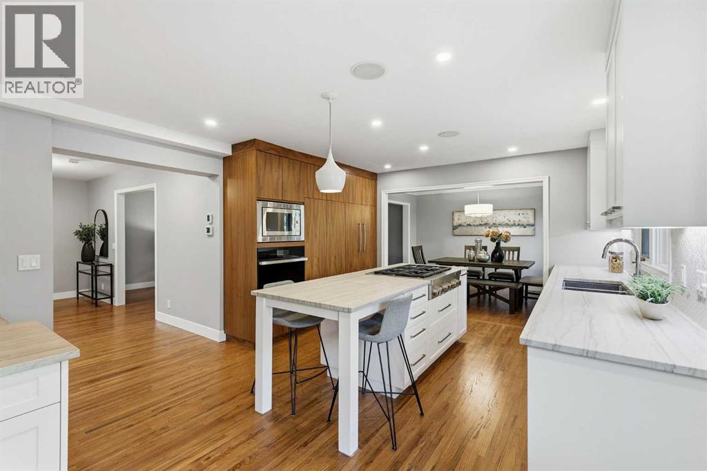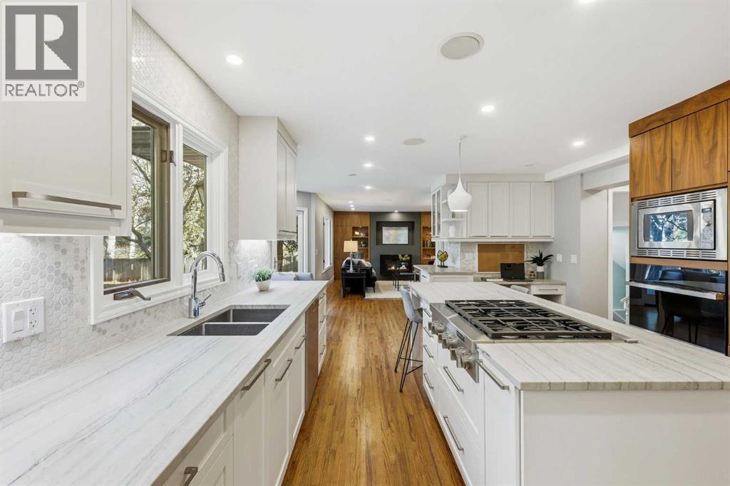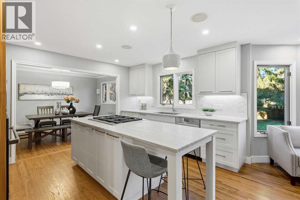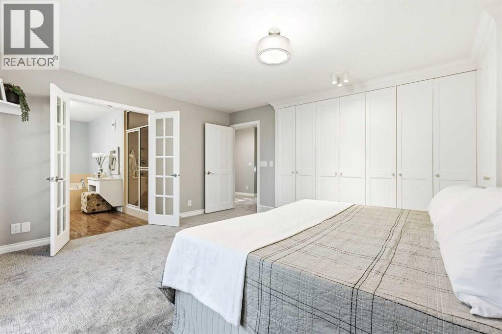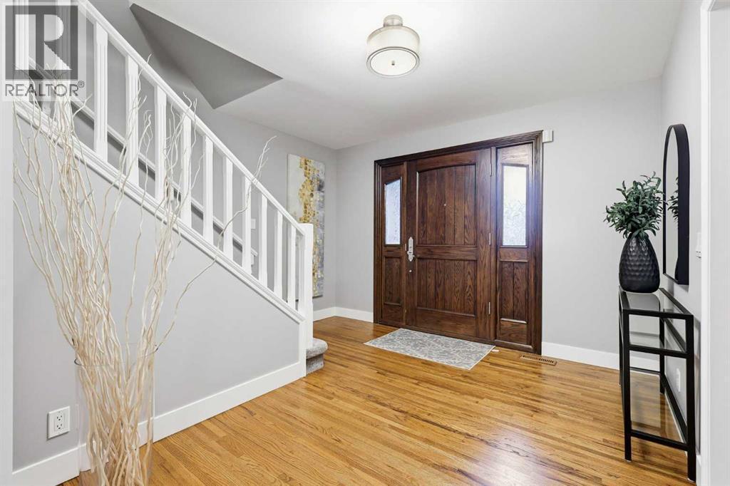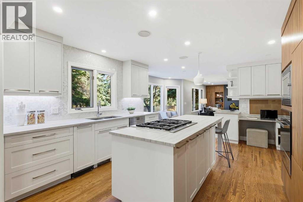 Welcome to Willow Park Estates, where timeless architecture meets modern refinement. Perfectly positioned on a massive pie-shaped lot siding onto a green space and the Willow Park Golf Course, this impressive 2-storey home offers over 2700 sq. ft. above grade, a fully finished basement, 4 bedrooms, 4.5 bathrooms, and a double attached garage. Step inside to a bright, open foyer that immediately feels inviting. The home has been recently repainted, with refinished hardwood floors adding warmth and sophistication throughout. The open-concept layout connects the formal living and dining areas to the beautifully renovated kitchen—a true centerpiece of the home. Featuring quartz countertops, a central island, new Jenn-Air appliances and custom cabinetry, this space was reimagined to combine everyday practicality with elevated design. The adjacent home organization area provides a dedicated space for managing family life, while the cozy family room with a gas fireplace and custom built-ins invite you to relax and unwind. A bar area and updated 2-piece powder room complete this thoughtfully designed main level, making entertaining both easy and elegant. Upstairs, the layout continues to impress. There are three spacious bedrooms, a dedicated office with built-in desk and cabinetry, and a bonus room designed for flexibility. Complete with a Murphy bed, second fireplace, its own bar area, and a private ensuite, this room can serve as a media lounge, guest suite, or teenager’s retreat. The primary suite is a true sanctuary, offering custom built-ins, a private balcony overlooking the treed yard, and a luxurious ensuite featuring dual vanities, a huge jetted tub, and a steam shower. The upper-level laundry—featuring a brand-new washer and dryer—adds everyday convenience, alongside an updated 3-piece bathroom serving the secondary bedrooms. Downstairs, the fully finished basement provides even more versatile living space. A large recreation room is perfect for games, fitness, o r family movie nights. There’s also a fourth bedroom, a 3-piece bathroom, and a huge storage area complete with built-in shelving. The home’s updated electrical system, new HRV, and new A/C unit enhance comfort and efficiency throughout all seasons. Step outside to your own private retreat. The massive pie-shaped yard is surrounded by mature trees, offering serenity and privacy. A large deck with a BBQ gas line and gas fireplace extends your living space outdoors—perfect for summer gatherings or quiet evenings under the stars. The home’s new roof ensures long-term peace of mind, while the removal of all poly-B plumbing adds lasting value and reliability. Every detail has been considered—new carpet throughout adds a fresh feel underfoot, while dual new hot water heaters ensure this home is as practical as it is beautiful. Located in one of Calgary’s most established and desirable neighbourhoods, this property offers the best of Willow Park living. (id:6769)
