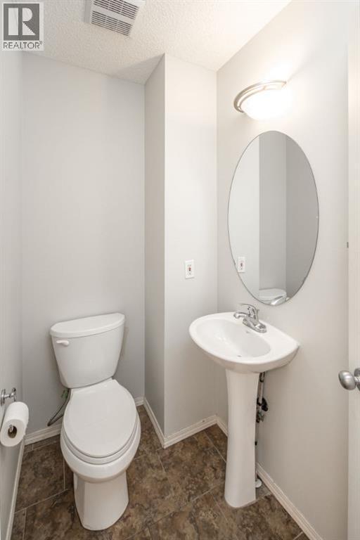 Move right in and enjoy this well-kept 2-storey townhouse backing onto a walking path. Featuring a sunny west-facing front porch and a spacious rear deck, this home offers great outdoor space for relaxing or summer barbecues. Inside, you'll find bright, generous room sizes and plenty of natural light from the many windows. The upper level includes 3 bedrooms, highlighted by the huge primary bedroom with double closets and cheater access to the full bathroom. The main floor offers a functional kitchen with maple cabinetry, pantry, and space for a table, plus a large living/dining area ideal for entertaining. Additional features include a spacious front entry, 2-piece main floor bath, newly finished vinyl plank flooring, ceramic tile in the entrance, hall, kitchen and powder room, wrought iron railing, roughed-in vacuum system, 5 appliances, and fresh interior paint. Parking is convenient with 1 stall right in front of the unit, Located close to schools, shopping, and the lake, and tucked into one of the quietest areas of the complex. (id:6769)