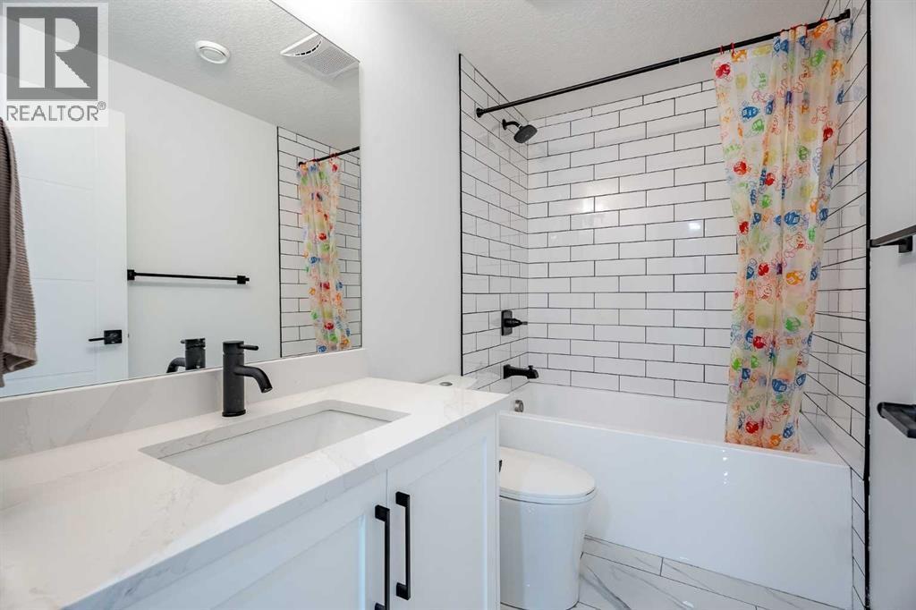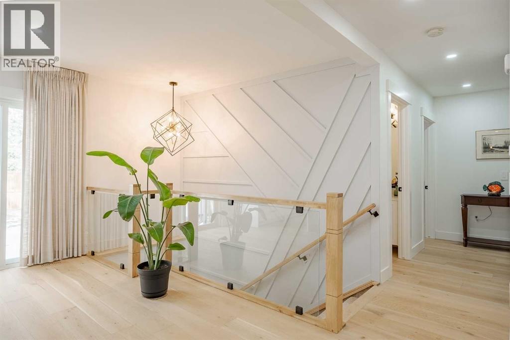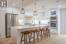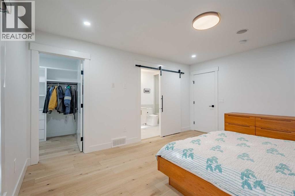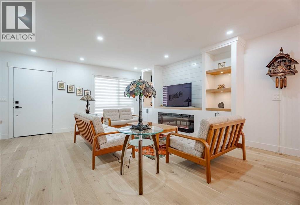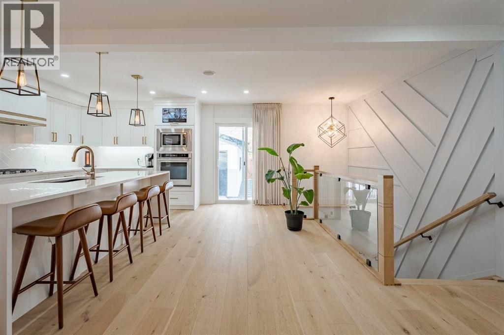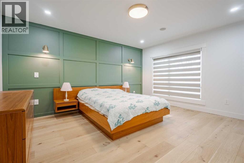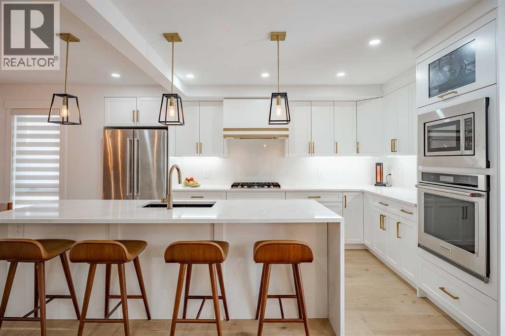 MODERN FARMHOUSE BUNGALOW IN BRENTWOOD. Tucked along a mature, tree-lined street in Brentwood, this beautifully reimagined bungalow has been thoughtfully designed with everyday functionality kept in mind. Completely renovated down to the studs in 2023, the home now offers over 2,350 square feet of refined living space with a layout that is modern, open, and purposeful. Curb appeal sets the tone. Smooth stucco, exposed concrete pathway, and fresh landscaping create a modern farmhouse presence that stands out while still complementing the established character of the neighborhood. Inside, the home opens into a bright, SOUTH-FACING living space where large windows invite in natural light and highlight the clean lines and warm finishes throughout. Engineered hardwood flooring and a custom fireplace feature anchor the living room, creating an inviting focal point for gathering and relaxing. The heart of the home is the expansive kitchen and dining area. Designed for entertaining and daily life, the kitchen features an oversized island with quartz countertops, full-height cabinetry, and premium stainless-steel appliances including a built-in oven and gas cooktop. The layout flows effortlessly into the dining area, while patio doors extend the living space outdoors to the private backyard, an ideal setting for summer evenings or weekend barbecues. A standout feature of the main floor is the presence of TWO BEDROOMS, offering flexibility rarely found in bungalow living. Perfect for downsizers, or young professionals that value their own space! The main primary bedroom serves as a retreat, complete with a spacious walk-in closet and a beautifully appointed five-piece ensuite with dual vanities, a free-standing tub, and a custom shower. The second bedroom also enjoys its own walk-in closet and private 4-piece ensuite, making it ideal for guests, extended family, or multigenerational living. Downstairs, the fully developed basement continues the home’s thoughtful design. A lar ge recreation / family room is centered around second fireplace which adds warmth and character, reinforcing the comfortable, welcoming atmosphere and complemented by a stylish wet bar for those movie nights, entertaining friends, or creating a comfortable lounge space. Two additional bedrooms, a full bathroom, and a functional laundry area with a sink provide both flexibility and convenience, ensuring the home adapts easily as needs evolve. Outside, the private backyard is framed by fence with mature trees, offering both privacy and charm. The finished double detached garage completes the property, providing secure parking and additional storage. Every detail of this home reflects the care and quality of its full rebuilt. Smart home features including a built-in sound system with speakers further enhance the living experience. Situated in one of northwest Calgary’s most sought-after communities, Brentwood continues to be prized for its mature streets, proximity to parks, schools, the U of C. (id:6769)
