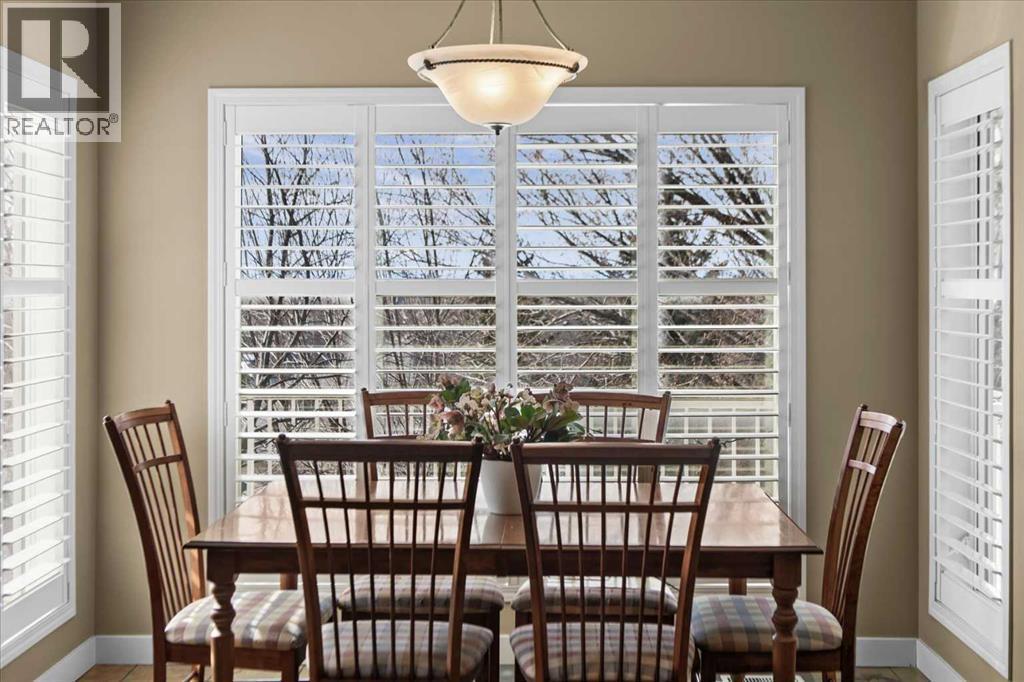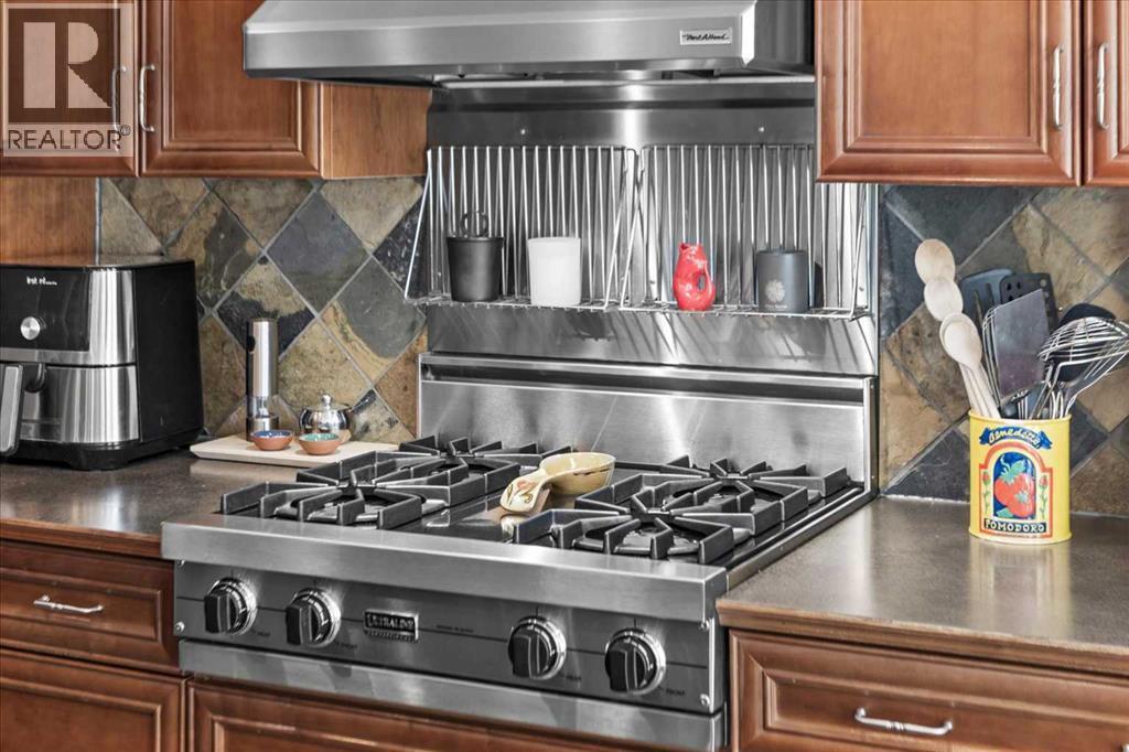 Tucked at the end of a quiet cul-de-sac in one of Tuscany's most sought-after pockets, this is the kind of street that quietly checks every box for family life. Backing directly onto greenspace and a walking path, the lifestyle here is built into the location - step through the back gate and the path connects you on foot to both St. Basil and Tuscany School, with the Tuscany Market and Tuscany Club equally close. The neighbours are wonderful, the street is full of families, and that sense of community is something you feel the moment you arrive. Inside, the vaulted foyer sets a welcoming tone, leading into a home where the layout has been thoughtfully designed for real family life. Slate and hardwood flooring carry through the main floor, and a generous vaulted room at the front - currently formal dining - offers flexibility as your needs evolve. A separate den with built-ins provides a quiet retreat for work or study.The back of the home is where things open up beautifully. An almost entirely windowed rear wall floods the family room, dining nook, and kitchen with natural light, while garden doors lead to the upper deck - where winter reveals mountain and Canada Olympic Park views, and summer delivers those same COP views framed by the privacy of mature trees. Plantation shutters add a charming, tailored touch throughout. The kitchen centres around cherry cabinetry, a tiered island, and serious cooking credentials: a Viking gas range, newer oversized KitchenAid refrigerator (custom cabinet panels, on order, will match the cabinetry colour), KitchenAid oven, and newer microwave. A pantry with pass-through access to the dining room keeps everything connected and functional. Upstairs, the primary bedroom is genuinely spacious, with views that make mornings worth lingering in. The ensuite features a 6-foot clawfoot bathtub and separate shower, with a roomy walk-in closet rounding out the retreat. Two additional bedrooms complete the upper level. The walko ut basement has been set up for life's best moments - a large family room ready for movie nights (the wall-mounted TV is included), with room to add a pool table or exercise area. A fourth bedroom with access to a full bathroom and a well-sized laundry room complete the lower level. Step outside to a backyard that earns its keep in every season: an extensive patio, established perennial gardens, and the kind of summer privacy - thanks to mature trees and privacy panels - that makes the yard feel like your own retreat. And when it's time to head out, the back gate puts the path, the parks, and the schools right at your doorstep. (id:6769)