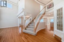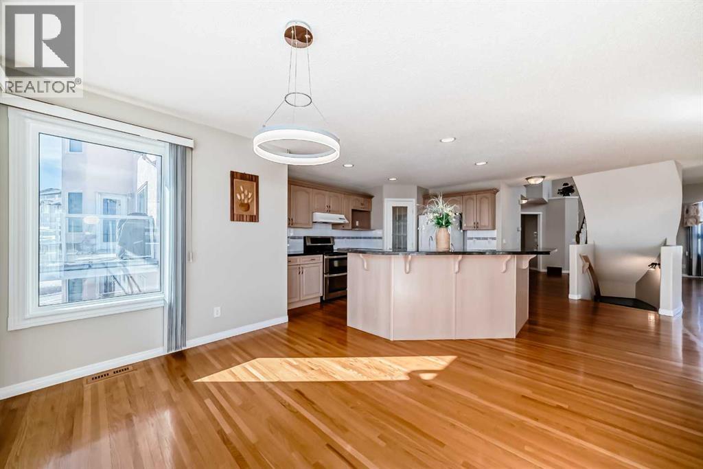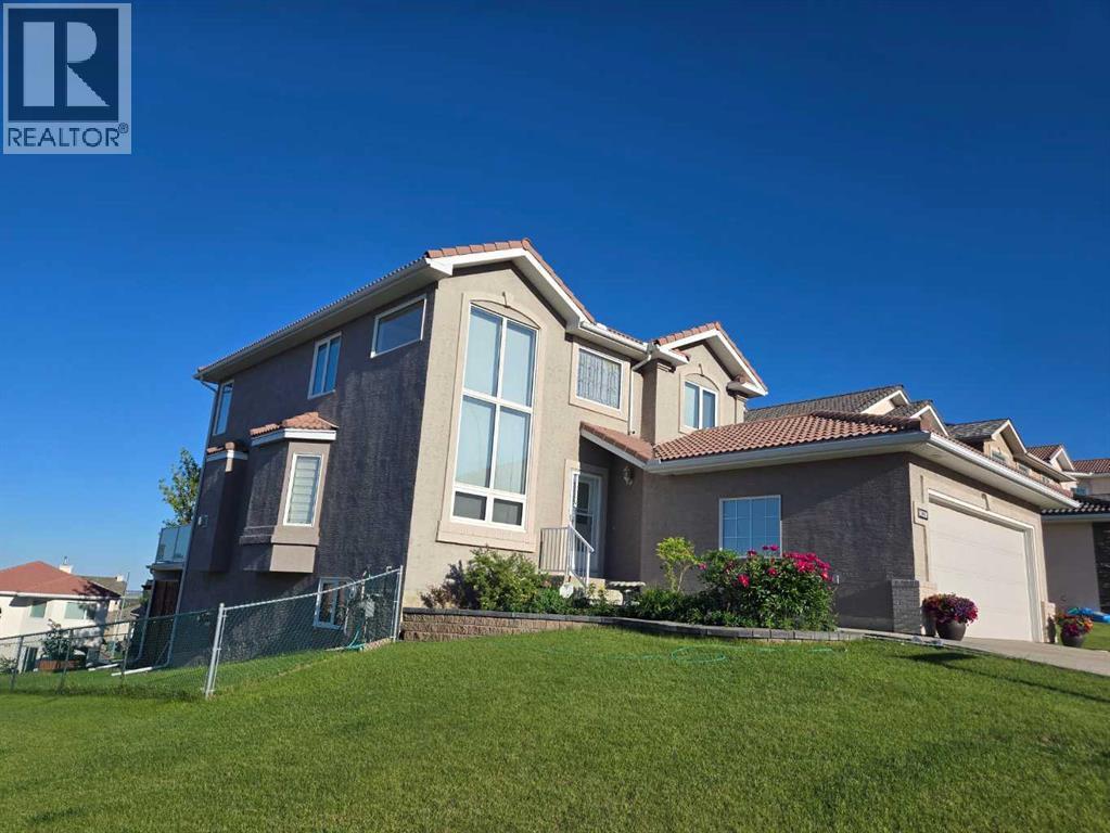 Open House on Saturday (March 14) from 2:00-4:00pm and Sunday (March 15) from 11:00 am - 2:00 pm. Offering ~3,200 sq. ft. of developed living space in a well-established NW Calgary community Hamptons. This meticulously maintained move-in-ready home sits on a premium corner lot with newly painted stucco siding and recently upgraded triple-glaze windows with 25-year warranty.The main floor features open-to-above ceilings, large windows for natural light, and an open-concept layout. The kitchen includes granite countertops, raised eating bar, and walk-in pantry, and connects to the formal dining room, breakfast nook, and living room with fireplace.Upstairs offers a primary bedroom with walk-in closet and 4-piece ensuite with jetted corner tub, plus two additional bedrooms and a full bathroom.The fully developed walk-out basement features a large family room with second fireplace, ceramic tile flooring, and two additional rooms suitable for guests or office use. A full-sized 8-ft rich cherry wood pool table is included.Outdoor space includes a maintenance-free upper deck with glass railings and gorgeous views, plus a lower patio with built-in wood pergola and lattice trellis, designed for outdoor seating and BBQs. The home is close to schools, parks, golf, shopping, and major routes. (id:6769)