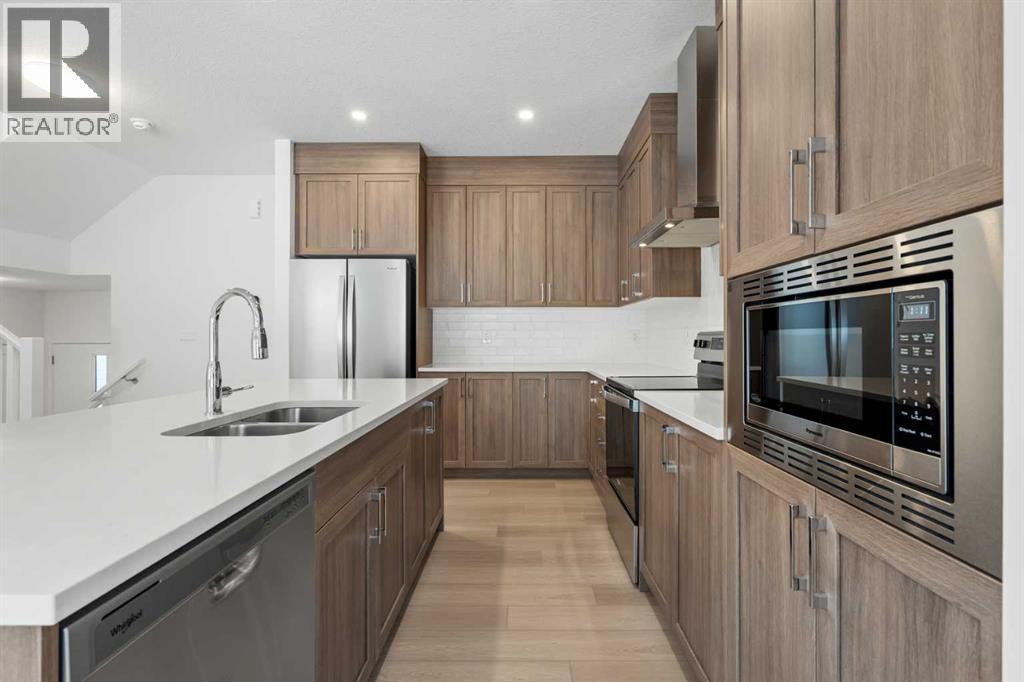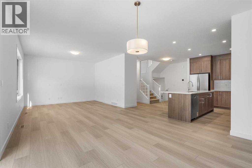 NEW BUILD DETACHED 5-LEVEL SPLIT | DOUBLE ATTACHED GARAGE | 3 BED / 2.5 BATH / 2075 SQ FT ABOVE GRADE | WEST-FACING BACKYARD | IMMEDIATE POSSESSION – Welcome to this beautifully designed detached home by Minto Communities, an award-winning Canadian builder with over 70 years of experience, located in Wildflower, proudly voted Best New Community in Canada (2025). This vibrant, master-planned community in Airdrie is designed with lifestyle and connection in mind, offering an exciting mix of home styles in a neighbourhood built to grow with you.Finished with modern details throughout, this impressive 5-level split offers a unique and functional layout ideal for growing families and those who love to entertain. The main living level features a beautiful kitchen complete with a large central island, stainless steel appliances, and abundant cabinetry for storage. Positioned at the back of the home, the dining room provides direct access to the west-facing backyard—perfect for enjoying sunny afternoons and evening gatherings. Just beside the dining room is the comfortable living room, creating a seamless and open space for everyday living and entertaining. A convenient half bathroom completes this level.One level up is your private primary retreat, featuring a spacious bedroom with a large walk-in closet and a well-appointed 4-piece ensuite bathroom.The next level offers a generous bonus room or loft area, providing a flexible space ideal for relaxing, working from home, or creating a family entertainment zone. This level also includes two well-sized bedrooms, a full 4-piece bathroom, and a conveniently located dedicated laundry room.On the lower level, the welcoming foyer provides access to the front porch and direct entry into the spacious double attached garage, offering everyday convenience and additional storage options. The undeveloped basement is expansive and provides even more opportunity to customize and expand your living space to suit your needs.Resid ents of Wildflower enjoy exclusive access to The Hillside Hub, a standout amenity centre featuring Airdrie’s first outdoor pool, a hot tub, an open-air sports court, and a variety of shared indoor and outdoor spaces designed for gathering, recreation, or quiet retreat. With nearby parks, pathways, amenities, and easy access to major routes, Wildflower delivers a truly well-rounded lifestyle.Combining award-winning community planning, modern design, and immediate possession, this is an outstanding opportunity to own a stylish new home in one of Canada’s most celebrated communities. Don’t miss your chance to make Wildflower home. Book your visit today! (id:6769)