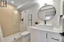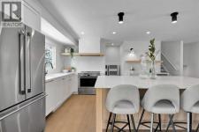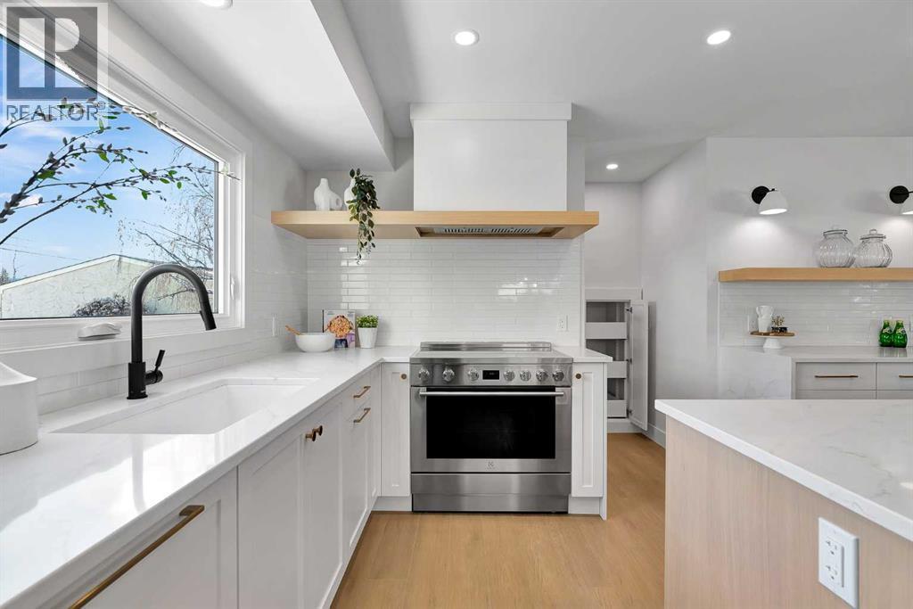 The more you look, the more you’ll fall in love with this exquisite Lake Bonavista home. Thefour-level split has been fully renovated with style and stellar attention to detail. Live the lakecommunity life, two blocks from the beach and backing onto green space. An upgraded exteriorhas a high-end look with new stonework, windows, and doors. Inside, natural light floods astunning main floor through full-height living room windows, while wide-plank floors anchor theairy aesthetic, connecting the open layout as you move into the custom kitchen. A massive eat-up island with hidden storage is the heart of the space. Quartz counters and subway tilebacksplashes pair with white oak shelving, black hardware, and a waterfall beverage bar inperfect minimalist elegance. High-end appliances include an induction range, French doorrefrigerator, beverage cooler, and a custom panel dishwasher. Integrated cabinets and drawersfor pantry items, recycling, spices and utensils add curated function. In the sunny dining area,glass-paned doors seamlessly transition to the outdoor living space. A mudroom with custombuilt-ins completes this level. Upstairs, the primary bedroom is decadent and serene. Theensuite offers dual sinks, built-in features, upscale finishes, and a gorgeous tiled shower. Thewalk-in closet is also custom. Two more bedrooms share a beautiful main bathroom in a family-friendly layout. Custom millwork throughout the home adds a luxurious touch. A rare find; thelower levels are equally lovely. A sunken living room with high ceilings and big windows faces acozy gas fireplace in a chic hearth. The hanging barn door reveals a quiet office and the laundryroom, which has a quartz vanity and a new washer and dryer. Another full bath with a walk-inshower means this could be a self-contained guest area. In the basement, plush new carpethighlights comfort, and premium finishes continue. A rec area is ready for your home theatre orgames zone, and there is fourth bedroom here. Built-in cupboards and a utility room provideplenty of seasonal storage. The home was remodeled from the studs out, and all plumbing andelectrical, the panel and the hot water tank, have been upgraded. Outside, the deck overlooks abig southeast lawn edged by trees and foliage. The roof, soffits, and fascia are new, and theheated, oversized double-detached garage has also been updated, as has the fence along thepaved alley. The home backs onto a treed, parklike corner of the school field near the gardenprogram area. In walking distance, the community association offers a range of year-roundactivities, and the beach and tennis courts are also nearby. The Promenade at Lake Bonavistahas groceries, shops, and restaurants available within a few blocks, and this community hasseveral great schools and parks. Commuting and visiting are easy, using primary routes likeAnderson Road and Deerfoot Trail, and Macleod Trail has a great selection of shopping anddining options. Call today. (id:6769)