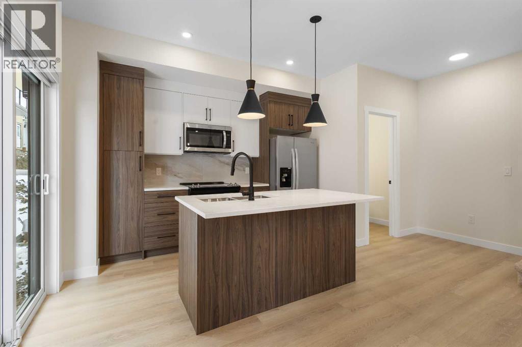 Welcome to Sage Hill Garden, a beautiful townhouse project in one of the most convenient locations in northwest Calgary. This stunning end-unit townhouse offers two storeys plus a fully finished basement, featuring 4 bedrooms and 3.5 bathrooms. South-facing oversized windows fill the home with natural light throughout every level.Thoughtfully designed with both style and comfort in mind, this home showcases elegant wood paneling on the TV feature wall and a beautifully finished accent wall in the living room. The kitchen is finished with quartz countertops and stylish two-tone cabinetry, creating a modern and functional space for everyday living.The fully finished basement adds exceptional versatility, complete with an additional bedroom, a spacious living area with a wet bar, and a full bathroom—perfect for extended family, guests, or extra entertainment space.Ideal for families seeking both convenience and a luxurious lifestyle, this home is within walking distance to Walmart, T&T Supermarket, and Creekside Shopping Centre, and just 5 minutes from Costco. Located in one of the core hub areas of northwest Calgary, this property offers outstanding access to shopping, dining, and everyday amenities. (id:6769)