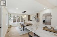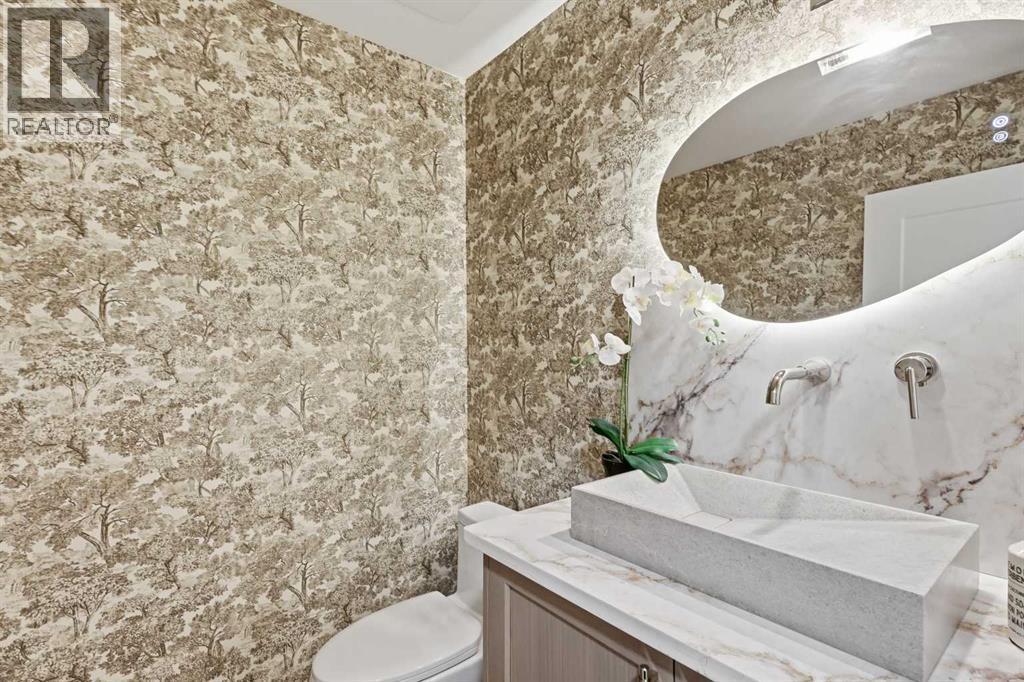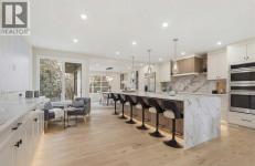 A rare Varsity Estates offering—where mature trees, quiet streets and modern Tuscan warmth create a home that feels like a private sanctuary. With tree-lined views from nearly every room, the setting is as impressive as the design.Step inside and the space unfolds with intention. Wide-plank oak floors and a striking open-riser staircase with wood treads and black spindles create an architectural welcome, drawing you to the main living level.The great room is wrapped in oversized LUX windows and anchored by a full-height stone fireplace with custom built-ins—made for slow mornings and effortless evenings. It flows into the showpiece kitchen, where the expansive 14' island becomes the heart of the home—topped with a waterfall quartz counter and book-matched veining that reads like art. Rift-cut white oak cabinetry and a fluted rift-cut canopy over the gas range set a refined tone, paired with Monogram appliances. Daily luxuries—water purifier and instant hot water—keep it beautifully functional, while the scale and flow make hosting effortless.The dining area opens to the back deck for seamless indoor–outdoor living—an entertainer’s dream and the kind of layout where gatherings feel natural, meals linger longer, and memories are made.Outside, the backyard is an oasis: private, mature, and layered. A generous deck off the dining room sets the stage for summer dinners, while an expansive secondary deck tucked into the heart of the yard is surrounded by greenery—ideal for hosting, lounging, or quiet mornings with coffee. With birdsong and the wind moving through the treetops, it feels far more like a backyard sanctuary than inner-city living.The primary retreat was designed to immerse you in that calm, with a massive picture window, warm wood accents and natural tones that invite you to exhale. A huge walk-in closet with custom built-in organizers completes the suite, including a makeup desk set beneath a window for natural light. The spa-like ensuite cont inues the experience with a generously scaled tiled shower with glass doors, a fluted freestanding tub that blends effortlessly into the fluted tile feature wall, and in-floor heating—finishes that feel cohesive and intentional from space to space.Downstairs, the lifestyle continues with a lounge-ready media space, wet bar and glass-front wine room, plus a dedicated gym and a generous lower-level “second primary” with large above-grade windows and tranquil backyard views. A hidden storage room adds a fun pop of personality.Including an insulated, heated double garage with EV rough-in and a hard-wired security system. In Varsity Estates, you’re minutes to top schools, Market Mall, the University of Calgary, Foothills & Children’s Hospital, LRT access, and the Bow River pathway network—one of Calgary’s most complete, connected communities.This isn’t just a home—it’s an experience, and a rare Varsity Estates luxury offering that doesn’t come along often. (id:6769)