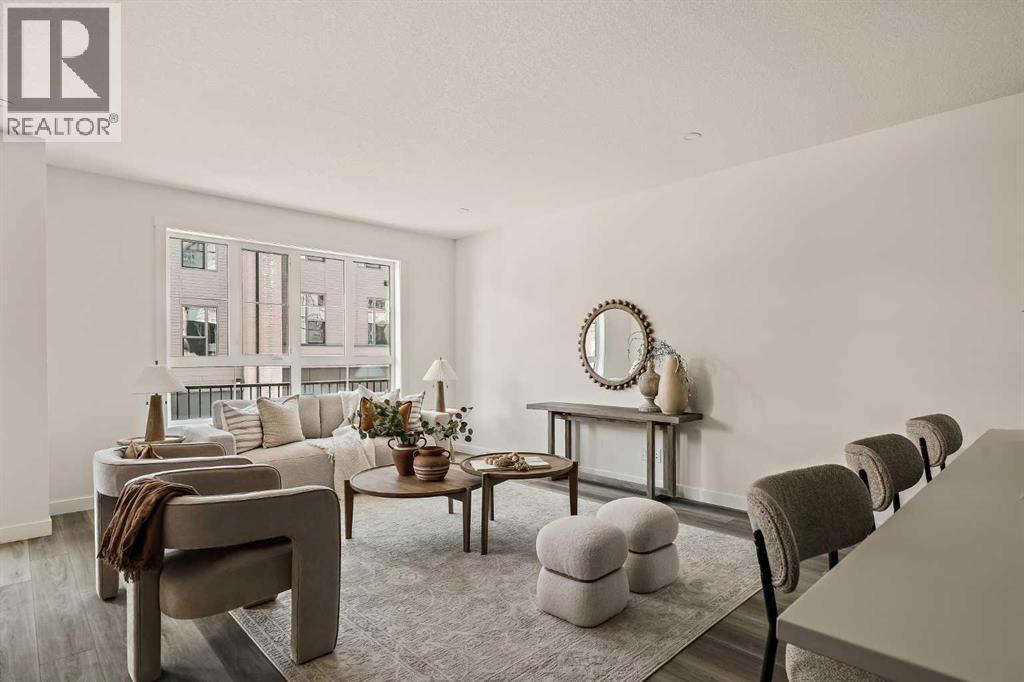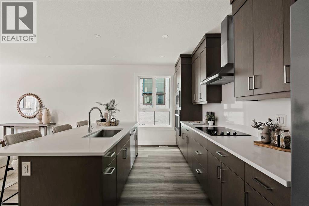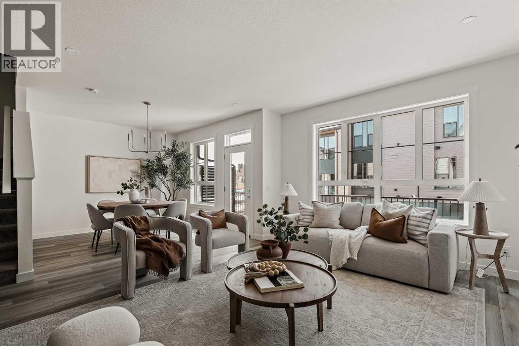 **Open House this Sunday, March 15th from 11:00 AM - 1:00 PM** Welcome to the Torrey at Crown Park - an exceptional opportunity offering a brand-new, move-in-ready townhouse featuring 3 bedrooms, 2.5 bathrooms, and a private double-attached garage. Offering nearly 1,700 ft² of thoughtfully designed living space, this end-unit townhome is the last opportunity ready for immediate possession and it is perfectly positioned within the development. Large, southwest-facing windows provide a bright and comfortable living environment by bringing in natural light throughout the day. The bright and open main living area showcases a stunning kitchen with endless upgrades, including built-in appliances, a quartz island, and timeless cabinetry. Designed with entertaining in mind, the kitchen flows seamlessly into the expansive main living area, creating the perfect space for gatherings or everyday living. Large southwest-facing windows throughout the main level enhance the sense of space and light, creating a welcoming atmosphere year-round. The impressive great room offers ample space for virtually any furniture configuration and opens directly into the large dining area, allowing for a seamless transition between spaces. The main level is complete with a 2-piece powder room and direct access to the sprawling 26' balcony that spans the width of the home. The outdoor living space is equipped with a BBQ gas line and hose bib, adding everyday convenience and making it easy to enjoy outdoor living. The upper level has been thoughtfully designed, with the primary suite spanning the width of the home while the secondary bedrooms and main bathroom are positioned on the opposite end for added privacy. The ~12' x 12' primary bedroom easily accommodates a king bedroom suite and includes a walk-in closet and private 4-piece ensuite featuring dual sinks and a walk-in tiled shower. The upper level is completed by two additional bedrooms, a full bathroom, and convenient upper-floor laundry. T he flexibility of three bedrooms makes this home ideal for families, guests, or a dedicated home office, offering excellent long-term versatility and value. The entry level provides access to the private double attached garage, which includes additional space for storage along with a large dedicated storage room, keeping everything organized and secure year-round. Located in Crown Park - one of Calgary’s last remaining inner-city developments - just minutes from downtown, this home offers exceptional convenience with major transportation routes, amenities, and green spaces all close by. Perfect for first-time buyers, investors, or those seeking a lock-and-leave lifestyle with maintenance-free living, this brand new home is backed by a comprehensive builder warranty and Alberta New Home Warranty, allowing you to purchase with confidence and peace of mind. (id:6769)