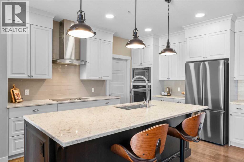 WELCOME HOME! Spacious and stylish 2nd floor condo in a modern 4 storey building, ideally located within a 5-minute walk to South Health Campus and close to the Seton YMCA, shopping, restaurants, and schools. Offering over 1,315 sq. ft. of living space, this bright unit features large windows throughout that fill the home with natural light. The stylish kitchen is complete with white quartz countertops, stainless steel appliances, a smooth induction cooktop with stainless steel hood fan, built-in wall oven and microwave, and a large island with undermount sink. A walk-in pantry provides excellent storage and convenience. The open-concept layout connects the kitchen, dining area, and living room, creating a comfortable space for both everyday living and entertaining. Patio doors lead to your private balcony with open views, a great spot to relax and unwind. This home offers 3 spacious bedrooms and the primary bedroom includes a walk-in closet, private 4-piece ensuite, a SECOND private patio off the primary bedroom, while a second full bathroom is perfect for overnight guests. A laundry room with full-size washer and dryer and built-in shelving provides additional storage and functionality rarely found in condo living. The unit also includes TWO titled parking stalls in the secure underground parkade, keeping your vehicles protected year-round. An excellent opportunity to own a spacious condo in one of Calgary’s fastest-growing communities, with quick access to healthcare, recreation, shopping, and major roadways. A fantastic option for professionals, down sizers, or investors alike! Book your showing today! This ones a gem! (id:6769)