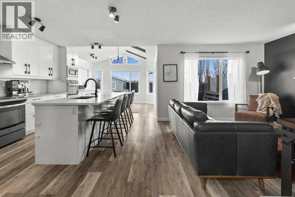 Welcome to 2,265 square feet of lovingly maintained and beautifully upgraded living space nestled in the heart of Coventry Hills, one of NE Calgary's most established and warmly welcoming communities. This exceptional home blends thoughtful renovations, carefully chosen modern finishes, and a truly private outdoor setting to deliver a lifestyle that feels both elevated and effortlessly comfortable from the moment you first arrive. Curb appeal sets the tone immediately and makes a lasting impression. Brand new shingles, fresh new siding, a striking new front door, a new back door, and stunning Gemstone lighting make this home shine with pride in every season. It is the kind of polished street presence that turns heads and sets expectations high, and the interior delivers on every single one of them. Step inside and you are welcomed by a bright, open main floor freshly painted in 2026 and filled with beautiful natural light. The heart of this home is an extraordinary kitchen renovation showcasing custom cabinetry, gleaming quartz countertops, a stunning backsplash, built-in wall oven, a built-in microwave, and a premium graphite appliance package including a brand-new fridge and a Bosch dishwasher. A massive island anchors the space perfectly, ideal for entertaining guests, enjoying casual family dinners, or hosting relaxed weekend brunches with the people who matter most. A custom built-in workstation flows seamlessly into the oversized eating area, where a dramatic vaulted ceiling soars overhead and two generous skylights pour warm natural light into the room. Upgraded lighting throughout adds warmth, sophistication, and polish to every corner of this beautiful home. Upstairs, the generous primary bedroom provides a peaceful sanctuary complete with a full ensuite and a walk-in closet featuring custom built-ins. Two additional well-sized bedrooms, each with custom closet organizers & new blackout blinds, offer a restful and cozy retreat for family members or overnigh t guests. Every detail has been considered with both comfort & lasting practicality in mind. The developed basement expands your living options with ease & flexibility, offering a spacious media area perfect for movie nights, an additional bedroom, and a full bathroom, making it ideal for teenagers, visiting guests, or a quiet home office escape. Step outside and discover your own private backyard sanctuary with no direct neighbours behind you. The large deck features a thoughtfully added privacy wall. This outdoor space is one you will truly treasure season after season and is ideal for hosting summer barbecue’s, watching the kids play, or simply unwinding in the evening quiet with a cold drink in hand. Coventry Hills offers scenic pathways, beautiful parks, top-rated schools, and every everyday amenity within easy reach. Whether you are a growing family, a young professional, or simply someone who appreciates a meticulously maintained and a move-in ready home, this is the one you have been waiting for! (id:6769)