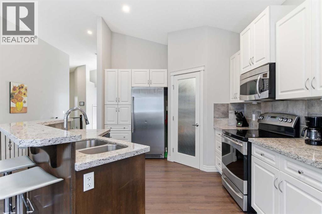 Beautiful and ideally located this 5 bedroom bungalow is well maintained and move in ready! Whether you are a empty nester or a family you will love this functional open concept layout from the moment you come into the vast entryway. The impressive main floor features a modern kitchen with loads of cabinets and drawers, quartz countertops, island with breakfast bar, pantry and stainless steel appliances (brand new dishwasher!) all open to a good sized dining area and the spacious living room that centers around a cozy fireplace for those cold days and evenings. The expansive windows are tinted for extra privacy or if you wish take off the tint to let the beautiful sunshine in. No need to worry about the heat in the summer with the central air conditioning! Completing the main floor is a 4pc bathroom, laundry room and 3 spacious bedrooms including the primary bedroom where there is plenty of room for a king bed and extra furniture. Off the primary you will find a large walk-in closet and a 4pc en-suite. The finished basement adds more living space with the expansive family and rec room area, 2 more huge bedrooms, a storage room or maybe make it into a work out room or craft room and a 3pc bathroom that will be completed with a shower before possession day. Step out onto your lovely deck that has a gas BBQ line and relax in your landscaped back yard. Here you will also find a shed for those extra items you don't want to store in the heated garage. This home is located near to walking paths, lake, playground, schools and other amenities. You won't want to miss out on this home! (id:6769)