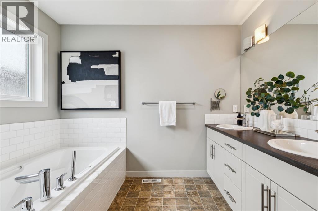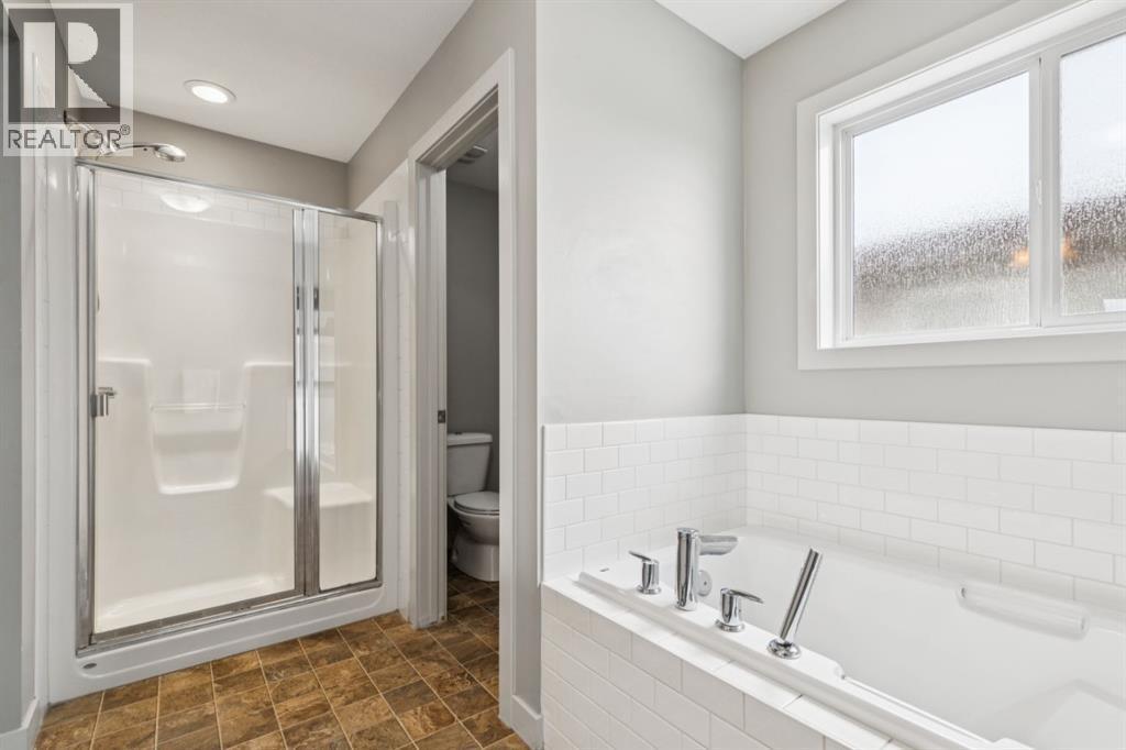 Welcome to this two-storey home in the sought-after SE community of Copperfield. Perfectly designed for both comfort and style, this impressive residence offers a WALKOUT BASEMENT WITH OVERSIZED WINDOWS AND SOARING NINE-FOOT CEILINGS, creating an open and airy feel rarely found in homes of this kind. The main floor showcases BRAND NEW VINYL PLANK FLOORING, offering both durability and modern style throughout the primary living spaces. At the heart of the home is a gourmet u shaped kitchen designed to featuring a GAS RANGE and kitchen is thoughtfully positioned to overlook the dining area, creating an open and connected space that is perfect for everyday living and entertaining. High-end lighting fixtures throughout the home, including two stylish ceiling fan units, add a refined designer touch while enhancing comfort and ambiance. At the rear of the home, the south-facing orientation floods the main living areas with natural light throughout the day, creating a warm and inviting atmosphere year-round. High-quality windows are engineered for energy efficiency, helping keep the home cooler during the summer months and warmer through the winter for exceptional comfort in every season. Upstairs, vaulted ceilings add a sense of grandeur and openness. The upper level offers three bedrooms, including a very spacious primary suite complete with a walk-in closet and a 4-piece ensuite bathroom, providing a comfortable and private retreat. A large bonus room on this level adds valuable additional living space, ideal for a family lounge, media room, or home office. Solid wood doors throughout the level reflect quality craftsmanship and durability. The home also offers excellent practicality with a larger insulated garage that provides two additional feet of space, along with abundant storage options throughout the property. Outdoor living is equally impressive with a spacious two-tier deck system extending across both the upper and lower levels, providing the perfect setting fo r entertaining or relaxing. The REAR WALKOUT LEVEL BACKS ONTO A BEAUTIFUL NATURAL GREEN SPACE, offering added privacy and a peaceful backdrop rarely found in suburban living, while concrete stairs run along the side of the property for convenient access between levels. The walkout basement is already roughed-in with plumbing, offering an ideal opportunity for future development tailored to your needs, and the laundry room is conveniently plumbed as well. Ideally located just steps from nearby schools, this home also benefits from Copperfield’s excellent access to amenities parks, pathways. Shopping, restaurants, and everyday services are just minutes away at 130th Avenue, while Seton’s urban district of shoppes, theatres, high school, and YMCA are a short trip down 52nd. Looking for a Walkout? this could be the one! (id:6769)