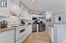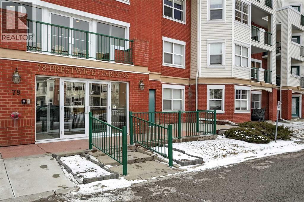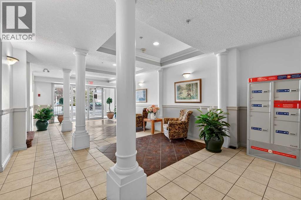 Welcome to this meticulously maintained main-floor condominium located in the highly desirable Highcastle complex, where comfort, convenience, and pride of ownership come together beautifully. Recently refreshed with brand new flooring and crisp new paint, this bright and inviting home showcases a modern, clean colour palette that feels both timeless and welcoming. Perfectly positioned at the end of the complex, this exceptional unit enjoys corner placement with additional windows, filling the home with natural light and creating a bright, airy atmosphere throughout. The charming brick patio walk-out offers direct access to the courtyard greenspace and nearby parking, creating a wonderful outdoor extension of your living space. A spacious foyer welcomes you inside, immediately showcasing the care and attention these owners have given the home. Warm luxury wood laminate flooring leads you into a thoughtfully designed open floor plan centered around a bright and functional kitchen. Crisp white cabinetry, tall upper cabinets with accent lighting, and a clean white subway tile backsplash create a fresh, contemporary feel. The central island with raised eating bar is perfect for casual dining, morning coffee, or gathering with friends. Large windows invite an abundance of sunlight into the generous living room where a corner gas fireplace with tile surround and mantle creates a cozy focal point, perfect for relaxing evenings at home. This well-designed layout offers two spacious bedrooms, thoughtfully separated for privacy. The primary bedroom features a large closet and a private three-piece ensuite, while the second bedroom is equally bright and inviting. Both bedrooms include ceiling fans for enhanced comfort and airflow. A full four-piece main bathroom, separate laundry room, and additional storage room complete the interior. Practicality meets comfort with a titled underground parking stall, making winter mornings effortless. A large private storage space convenient ly located behind the stall adds even more functionality. With its premium exposure overlooking greenspace and a covered brick walk-out patio, this home offers the rare benefit of main-floor accessibility combined with privacy and outdoor enjoyment. The Highcastle complex truly feels like home, and its location is unbeatable—just steps from the vibrant amenities of High Street where you’ll find restaurants, groceries, cafés, fitness studios, and everyday conveniences. Commuting is also easy with quick access to Deerfoot Trail and 52 Street. This beautifully maintained condo offers the perfect blend of style, comfort, and location—an exceptional opportunity to enjoy effortless living in one of the area's most convenient communities. (id:6769)