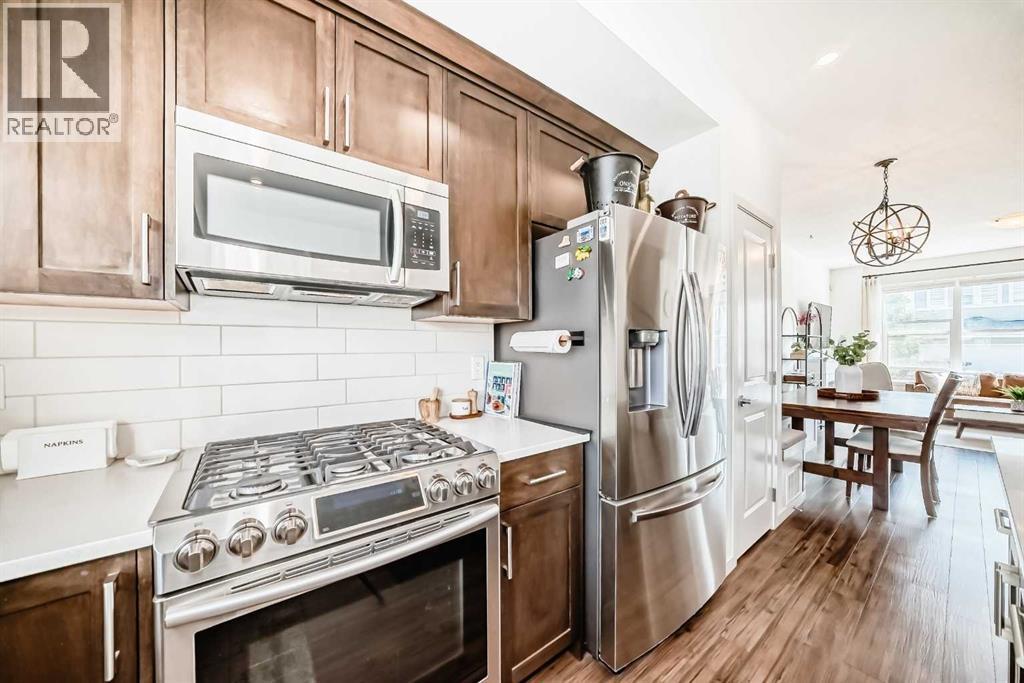 Welcome to this lovingly maintained home where modern craftsmanship meets one of Calgary's most thoughtfully designed family communities. This immaculate 3-bedroom, 3.5-bath home with fully finished basement and oversized double detached garage represents the rare intersection of meticulous build quality and resort-style living. From the moment you step inside, the home's pride of ownership throughout the over 1,700 square feet of usable living space is unmistakable. Nine-foot ceilings and expansive windows flood the air-conditioned open-concept floor plan with natural light, highlighting upgraded vinyl plank flooring that flows seamlessly throughout. The chef-inspired kitchen anchors the space with a premium stainless steel appliance package including a gas range, quartz countertops, custom maple cabinetry, and convenient centre island with breakfast bar, perfect for weekday mornings & weekend entertaining alike. The adjacent dining area features a built-in bench with hidden storage, while the spacious living room opens the floor plan beautifully. A convenient mudroom & powder room complete this level, keeping daily life organized and effortless. Upstairs, the oversized primary suite offers morning light, walk-in closet, and a four-piece ensuite with soaker tub/shower combination. Two additional generous bedrooms, upper-floor laundry, and another full bath provide comfortable family living. Central air conditioning throughout keeps every season comfortable. The true standout? A fully finished basement with separate side entrance, this is a game-changing feature that transforms daily living and future possibilities. This private entry allows teenagers their own space, provides seamless access for guests or extended family, and offers the flexibility for rental or multi-generational living down the road. With its open-concept living area, fourth full bathroom, and ample storage, the basement delivers immediate functionality while preserving future options. Step outsi de to your private backyard retreat: fully fenced & professionally landscaped with a sprawling 32' x 15' deck, separate chain-link dog run, and fire pit area. This private outdoor oasis is ideal for hosting summer barbeques or Alfresco dining. The oversized detached garage with back lane access ensures parking and storage will never be a concern. But here's what elevates this opportunity beyond the home itself. Wolf Willow's lifestyle! This master-planned community wraps around natural green space and Bow River Valley, offering 9 kilometres of pathways connecting parks, themed playgrounds, and a 9-acre off-leash dog park. The Wolf Willow Crossing commercial hub brings cafes, services, and conveniences steps from your door, while Fish Creek Provincial Park provides year-round recreation. Seamless access to Macleod Trail, Stoney Trail, Chaparral, and Walden amenities, connects to everything Calgary offers while enjoying the tranquility and amenities of amazing Wolf Willow! (id:6769)