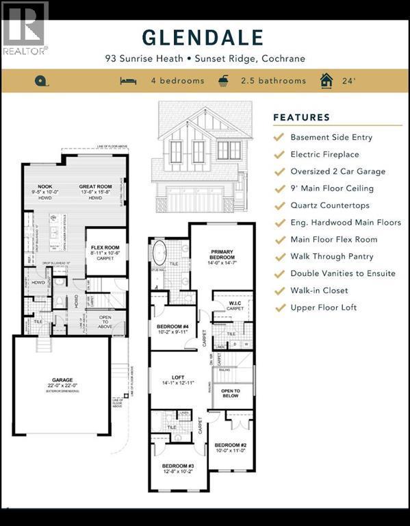Four Bedrooms & With An Oversized Garage - A True Rarity!Welcome to a unique opportunity in today's competitive real estate market! This impeccable 4-bedroom home is brought to you by the renowned Douglas Homes Master Builder. Presenting the coveted Glendale Model, this sun-soaked residence boasts a west-facing backyard and is conveniently located just a short walk to the future community center in Sunset Ridge.Elegance Meets Practicality:Step inside and be captivated by the abundance of upgrades awaiting you and your family. The main floor welcomes you with an open layout, soaring 9-foot ceilings, and grand 8-foot tall doors. Natural light floods the space through large windows, highlighting the beautiful engineered hardwood flooring throughout.A Culinary Oasis:The heart of this home showcases a spacious dining area and a kitchen that will inspire your inner chef. Revel in the high-end builder's grade appliance package and the striking quartz countertops that adorn every surface. On chilly evenings, gather around the stylishly warm and cozy electric fireplace, creating cherished family memories.Serene Retreat:The deluxe primary suite offers a tranquil escape with a generously-sized walk-in closet and his and her's vanity & sinks - a true oasis of relaxation. An additional feature is the large flex room on the main floor with two 8-foot doors, ideal for those working from home or as a versatile space to suit your needs.Community Perks:For families, this location is a dream come true. Rancheview K-8 School is just a few blocks away, and St. Timothy High School is a short drive south. The future community center and a third school, in the pipeline, will be within walking distance.Convenience and Adventure Await:Escape into the mountains, just 40-45 minutes away on the scenic route. The city of Calgary is a quick 30-minute drive, as is to your nearest Costco, while the airport is an easy 45-minute commute.Your Forever Home Awaits:If you've been searc hing for the perfect fit for your growing family, this exquisite and elegant home is the answer. But don't hesitate; opportunities like this are rare. A brand new 4-bedroom home at this price won't last long. Act now and make it yours today!Pictures from our Glendale Model Showhome. This listing has a slightly different exterior & interior finishing package than as shown in the pictures presented here...(Attention fellow agents: Please read the private remarks.) (id:6769)